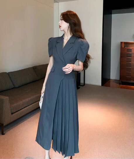 このロングワンピースは、パフスリーブが可愛らしさを一層引き立てるデザインが特徴です。揺れるプリーツが女性らしいシルエットを作り出し、特別なお出かけにもデイリースタイルにもピッタリです。