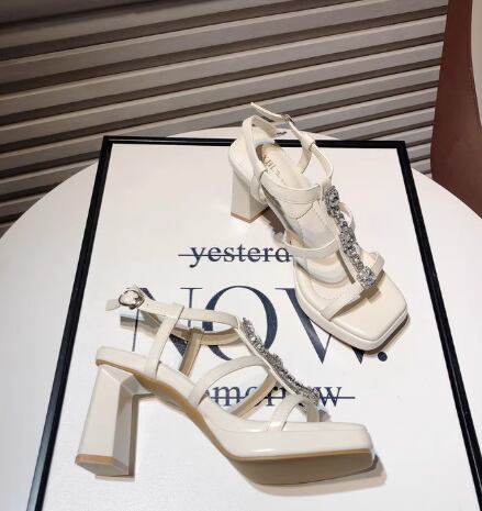 この8㎝のチャンキーヒールビジューサンダルは、存在感あるビジューが施されており、特別な日のお出かけコーデにもぴったりのアイテムです。