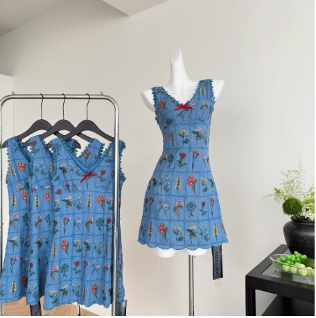 このフラワー刺繍ノースリーブミニワンピースは、可愛らしさとレトロ感を見事に両立させたアイテムです。