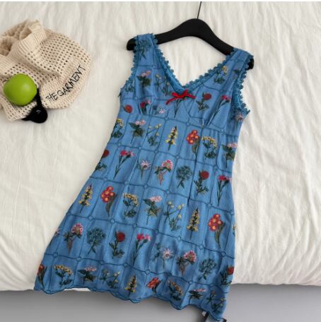 レトロかわいい♡フラワー刺繍ノースリーブミニワンピース