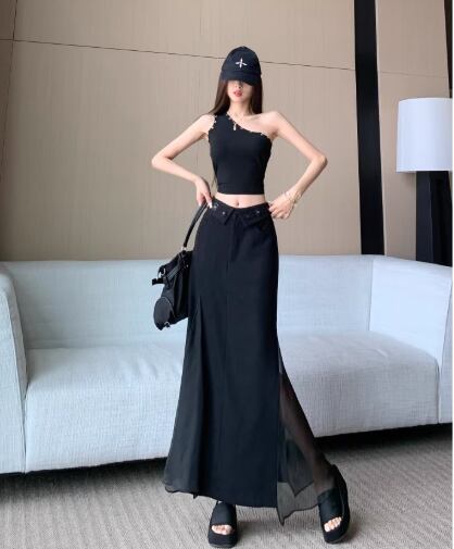 **大人気♡スタイリッシュに決まる♡シアーミックスブラックロングスカートが新登場です!**