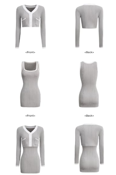 ギャルコーデ♡バイカラータイトニットワンピ+カーディガンセット