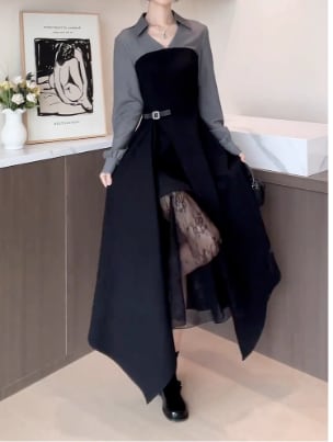 2color レースドッキング♡イレギュラースカートロングワンピース