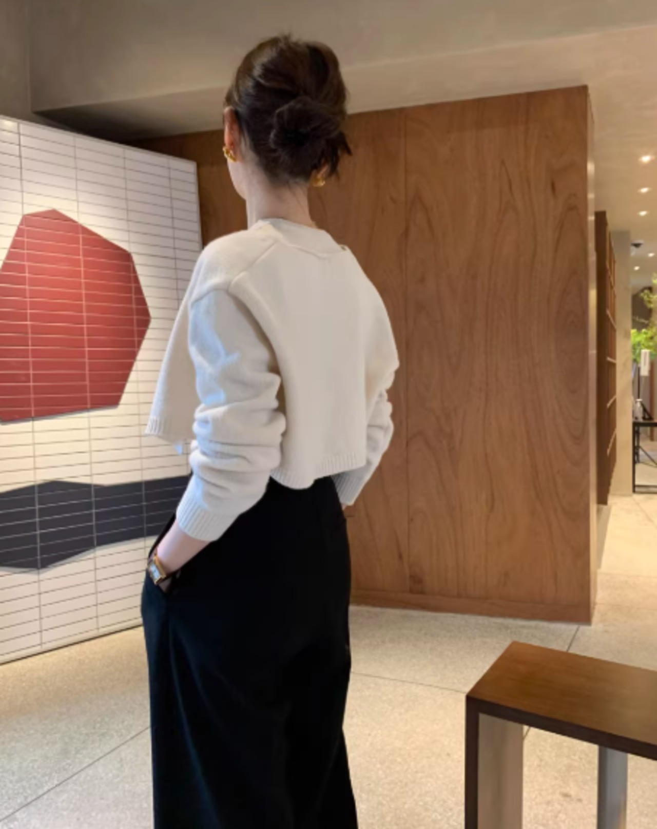 薄手のニットカーディガンは軽やかで、季節の変わり目にも重宝します。