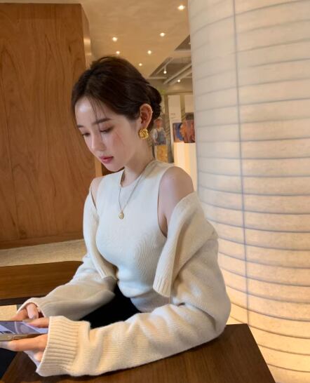 こちらのノースリーブトップスと薄手ニットカーディガンのセットは、どんなスタイルにもぴったりなシンプルなデザインが魅力。