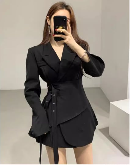 スタイリッシュに決まるスーツ風ワンピースで、あなたのコーディネートを楽しんでください!