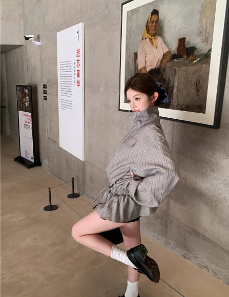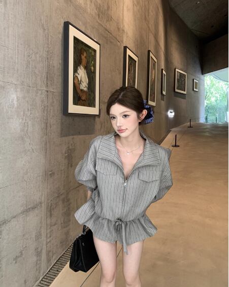 トレンド感◎ストライプ柄フロントジップアウターで、あなたのスタイルをアップデートしてください!