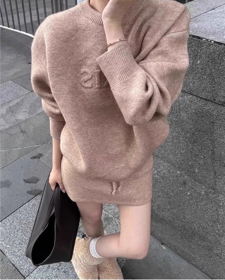 このリラクシーニットセーターとミニスカのセットアップは、トレンド感を取り入れた洗練されたデザインが魅力です!