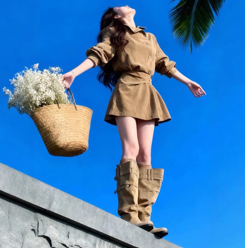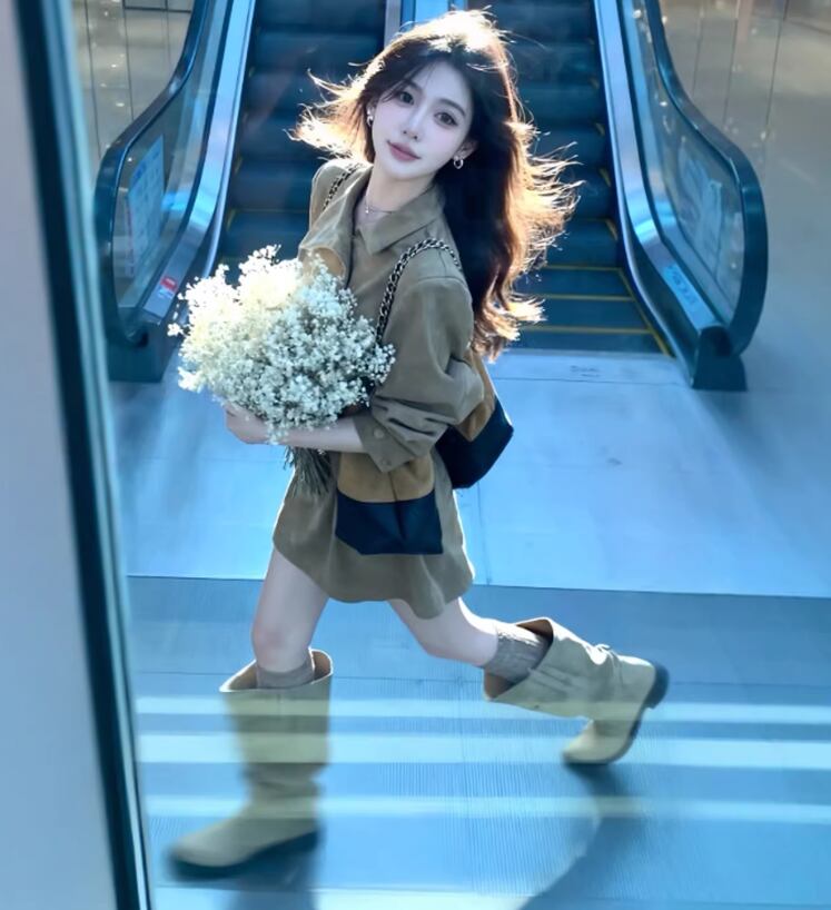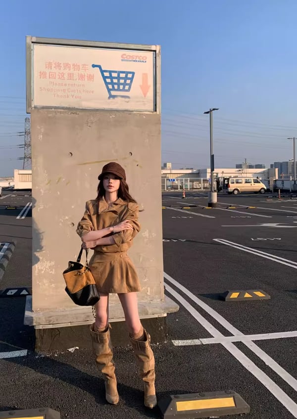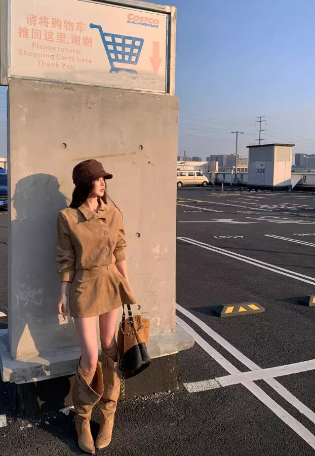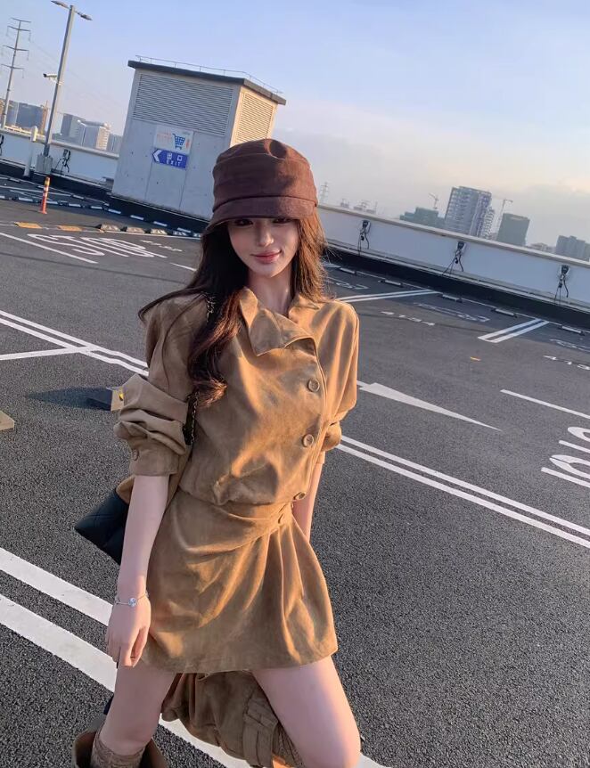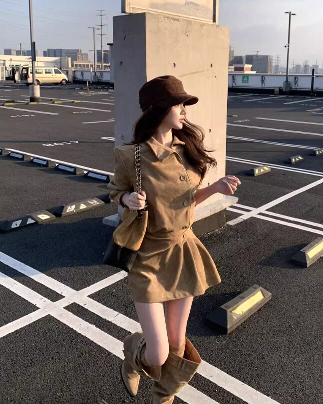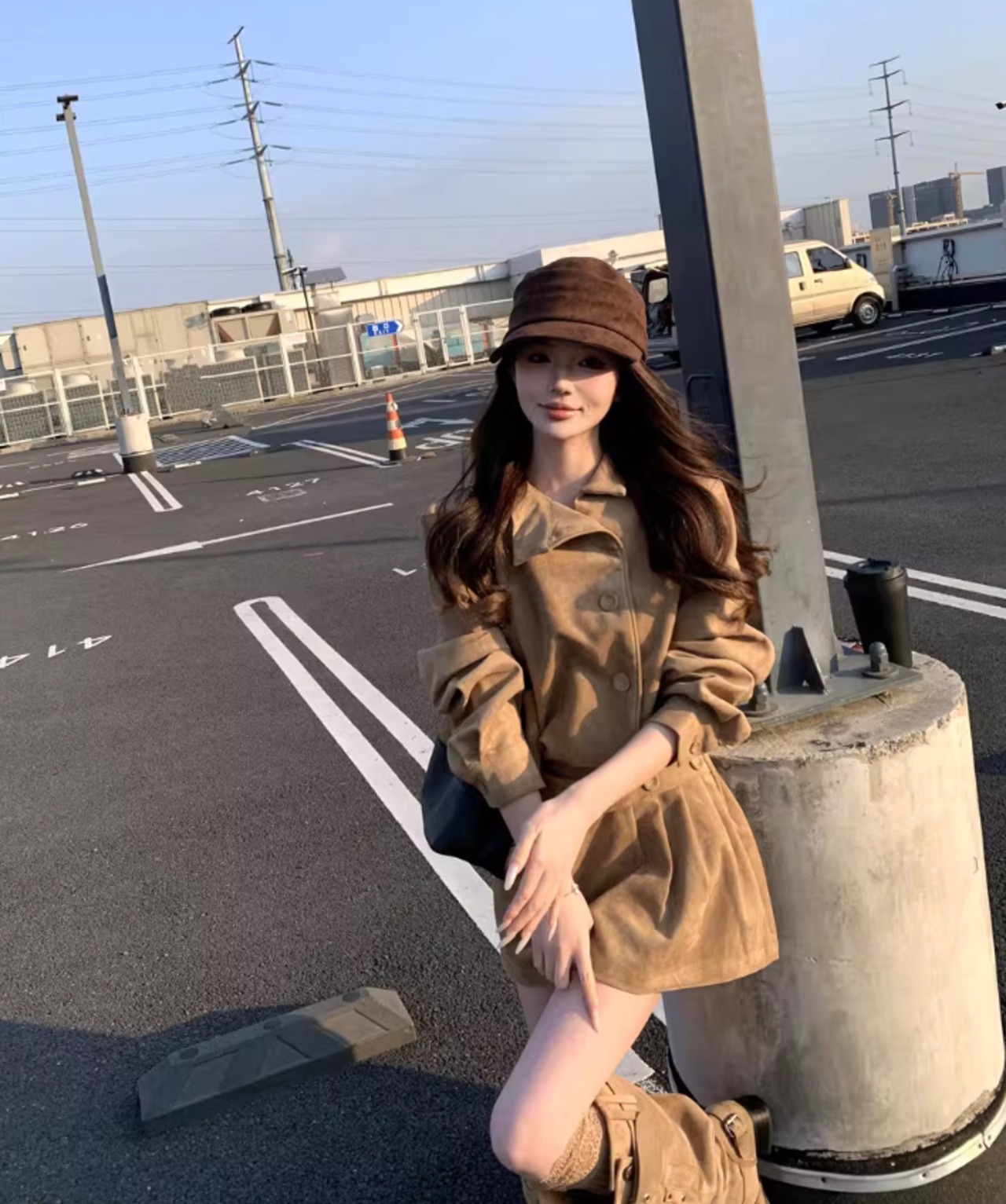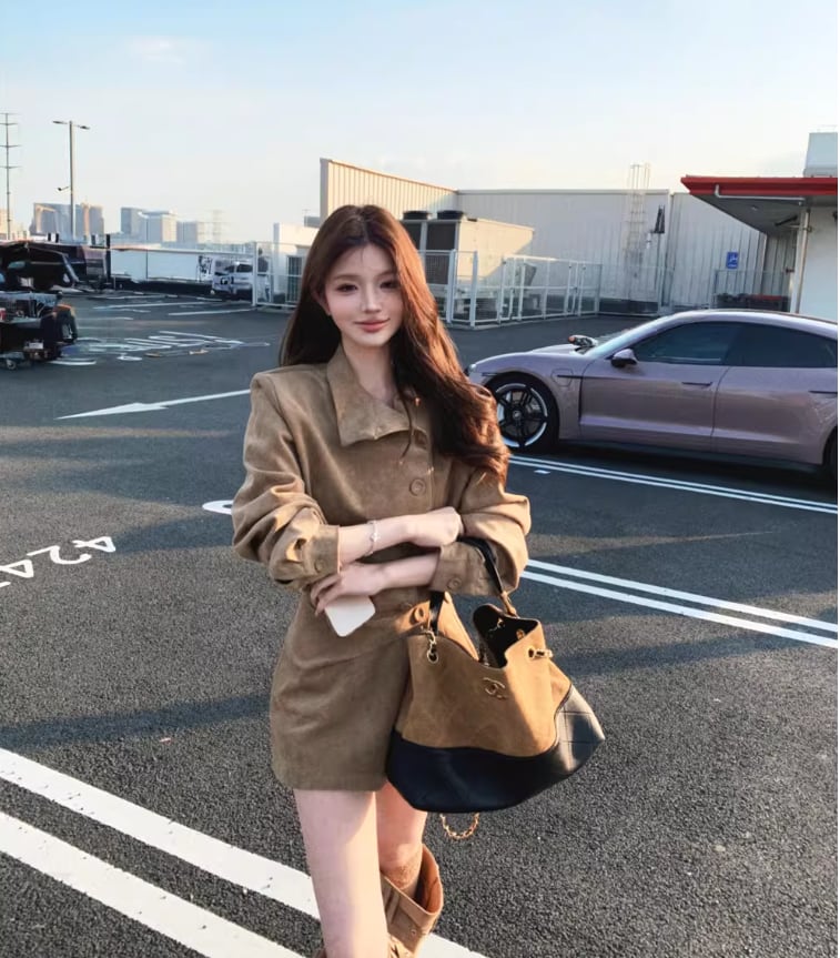 高見え♡ミニ丈レトロかわいい細見えスエードワンピースで、あなたのワードローブに新しい風を吹き込みましょう!