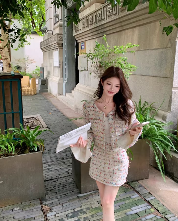 上品×ガーリー♡ツイードジャケット+ミニスカセットアップで、あなたのワードローブに新たな魅力をプラスしましょう!