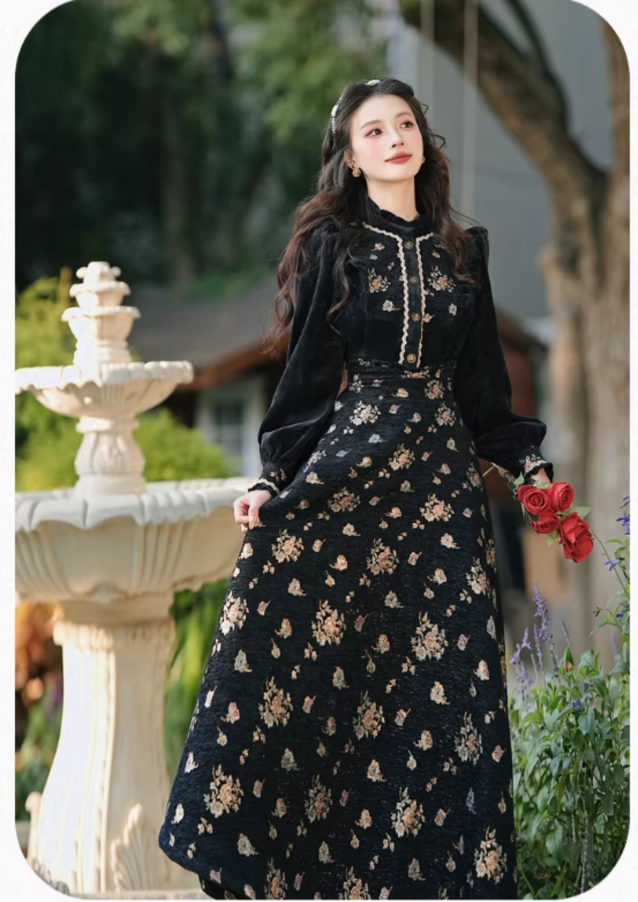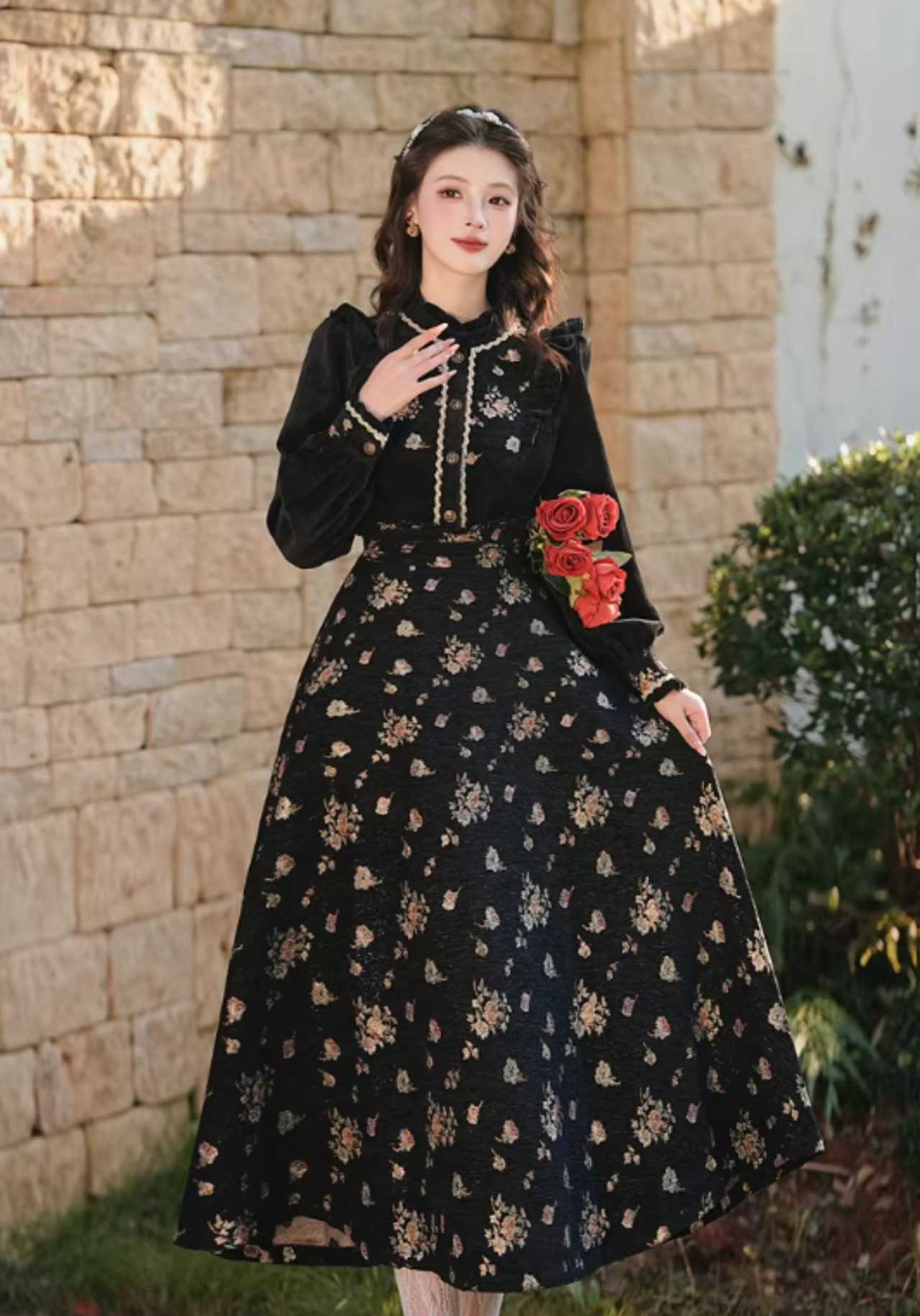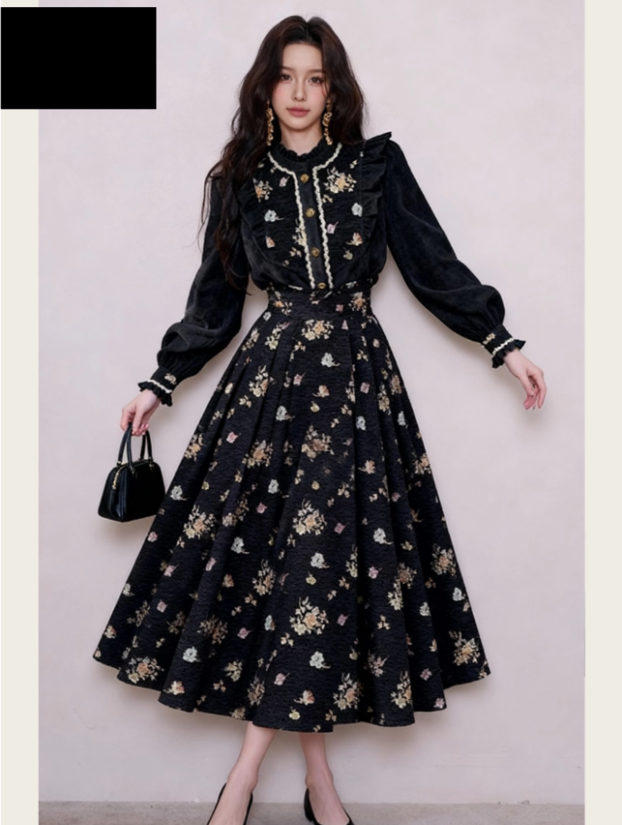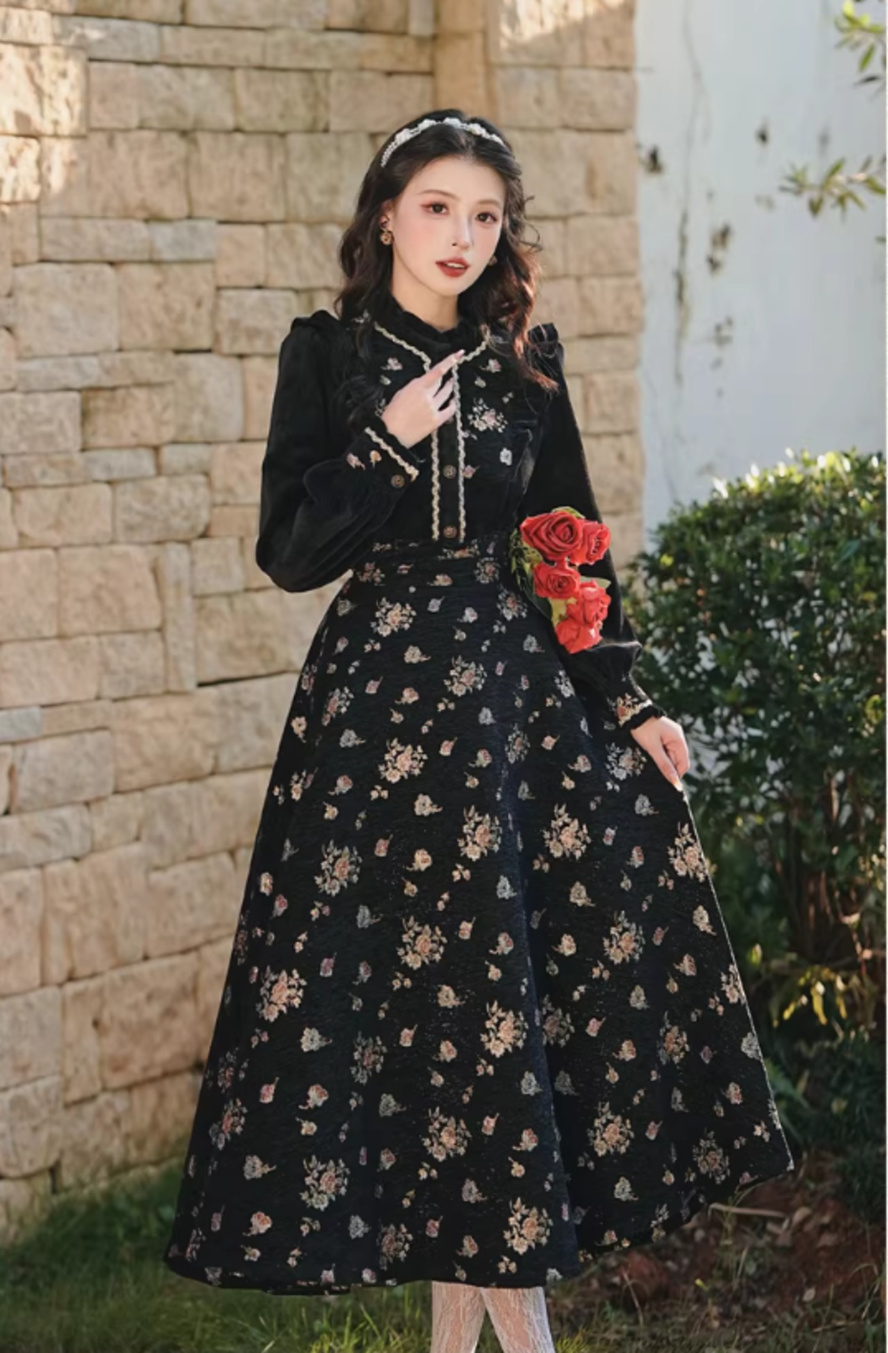 大人ガーリー♡レトロ花柄トップス+ロングスカートセットアップで、あなたのワードローブに新しい魅力をプラスしましょう!