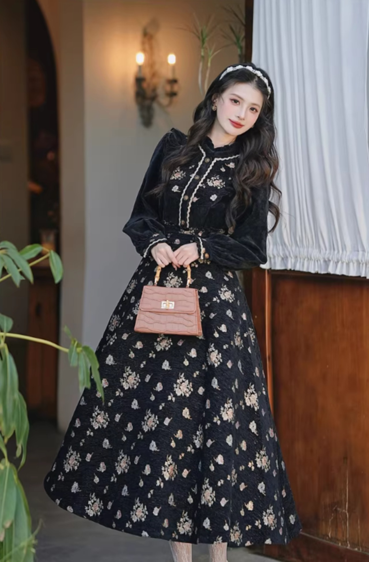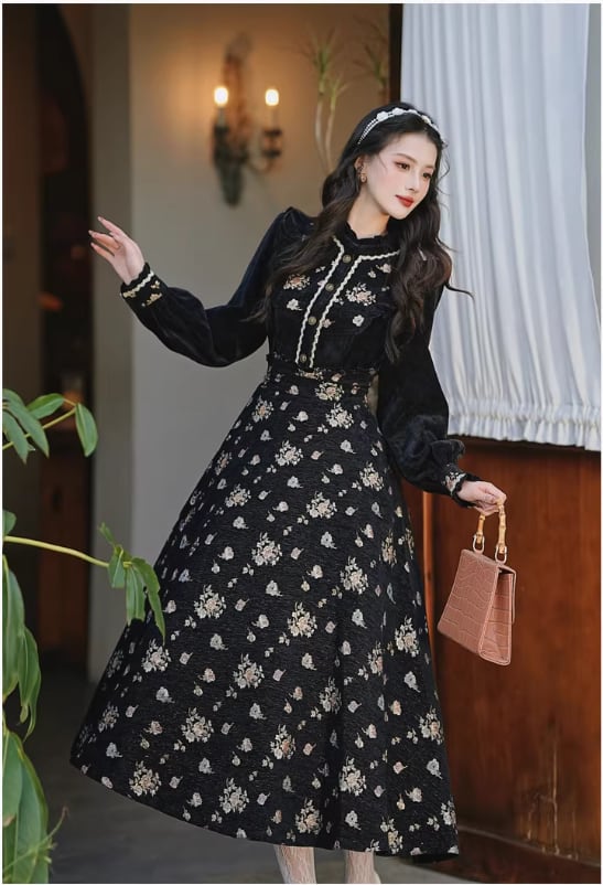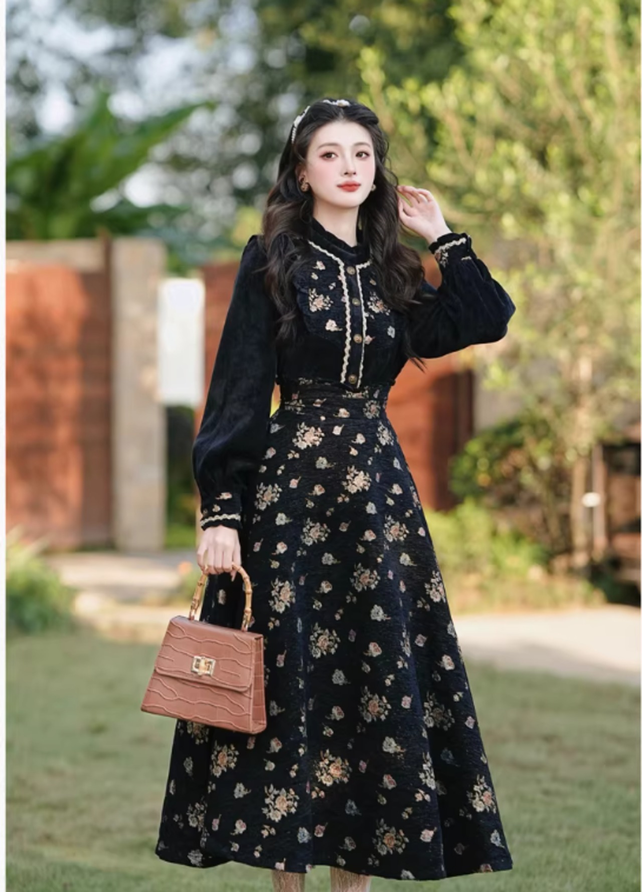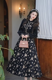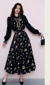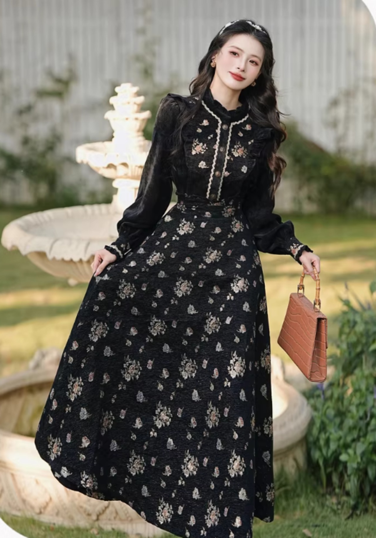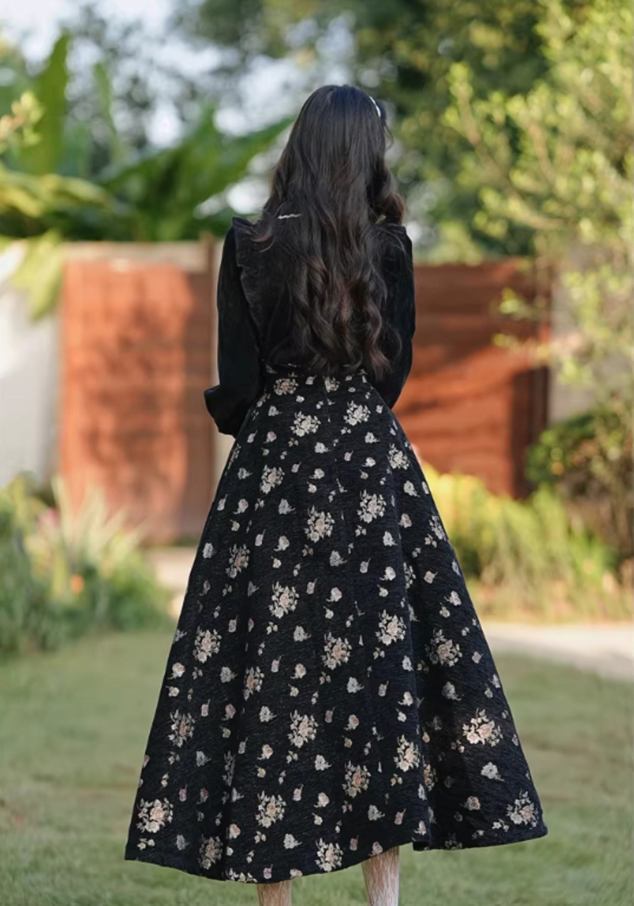 大人ガーリー♡レトロ花柄トップス+ロングスカートセットアップで、あなたのワードローブに新しい魅力をプラスしましょう!
