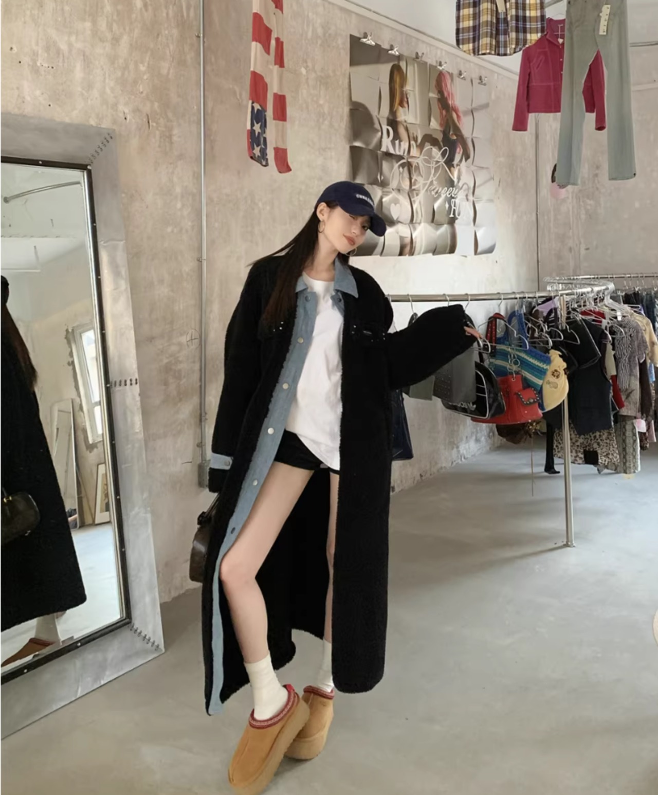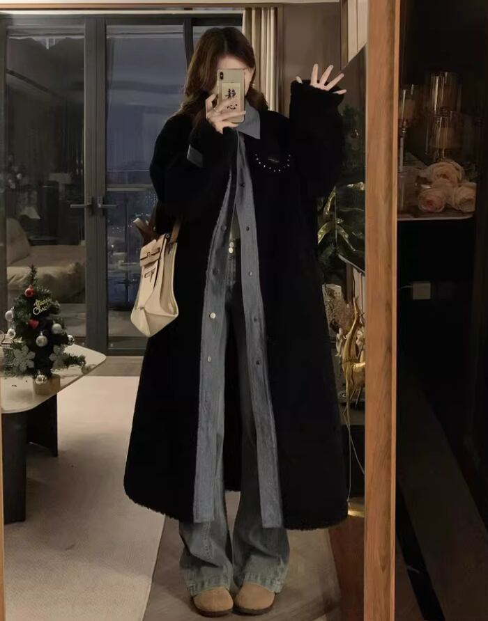 重ね着風でこなれ感♡あったかモコモコロングコートで、あなたのおしゃれを一層楽しみましょう!