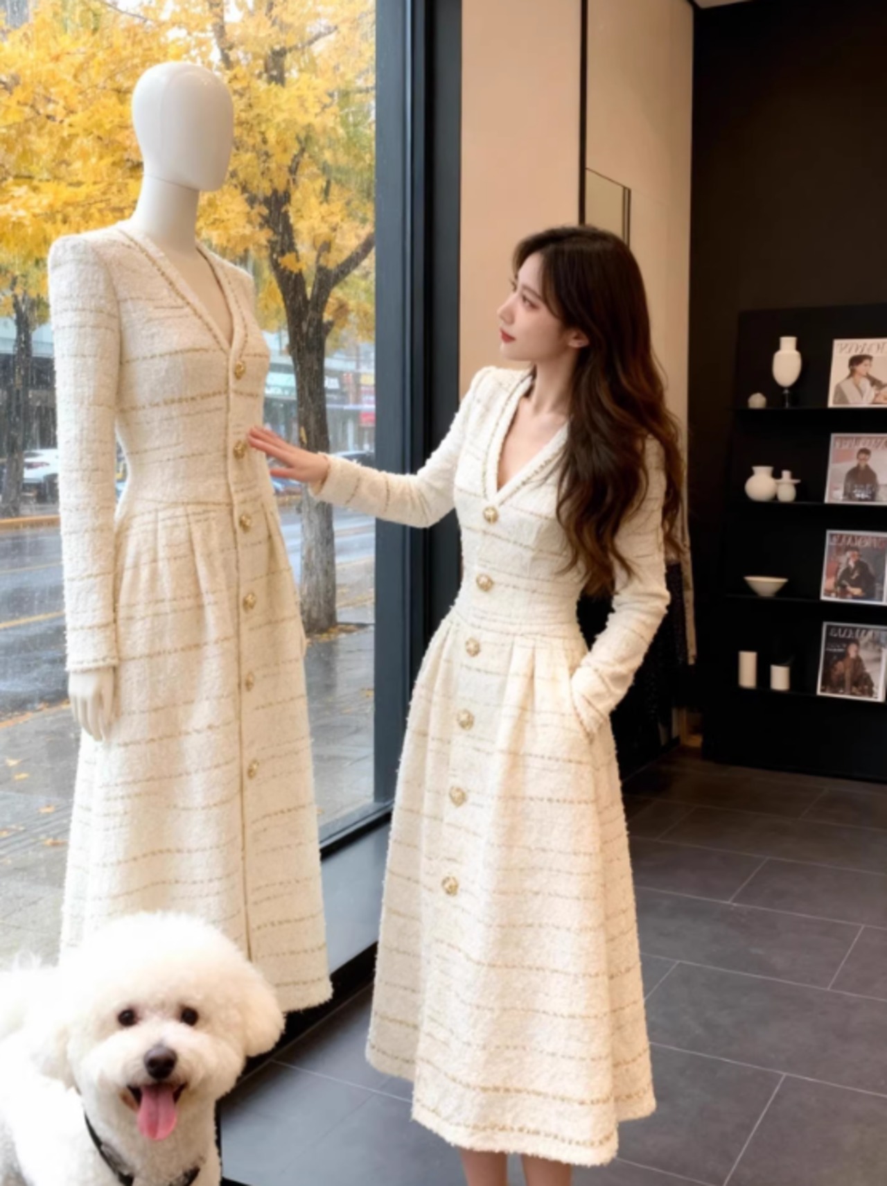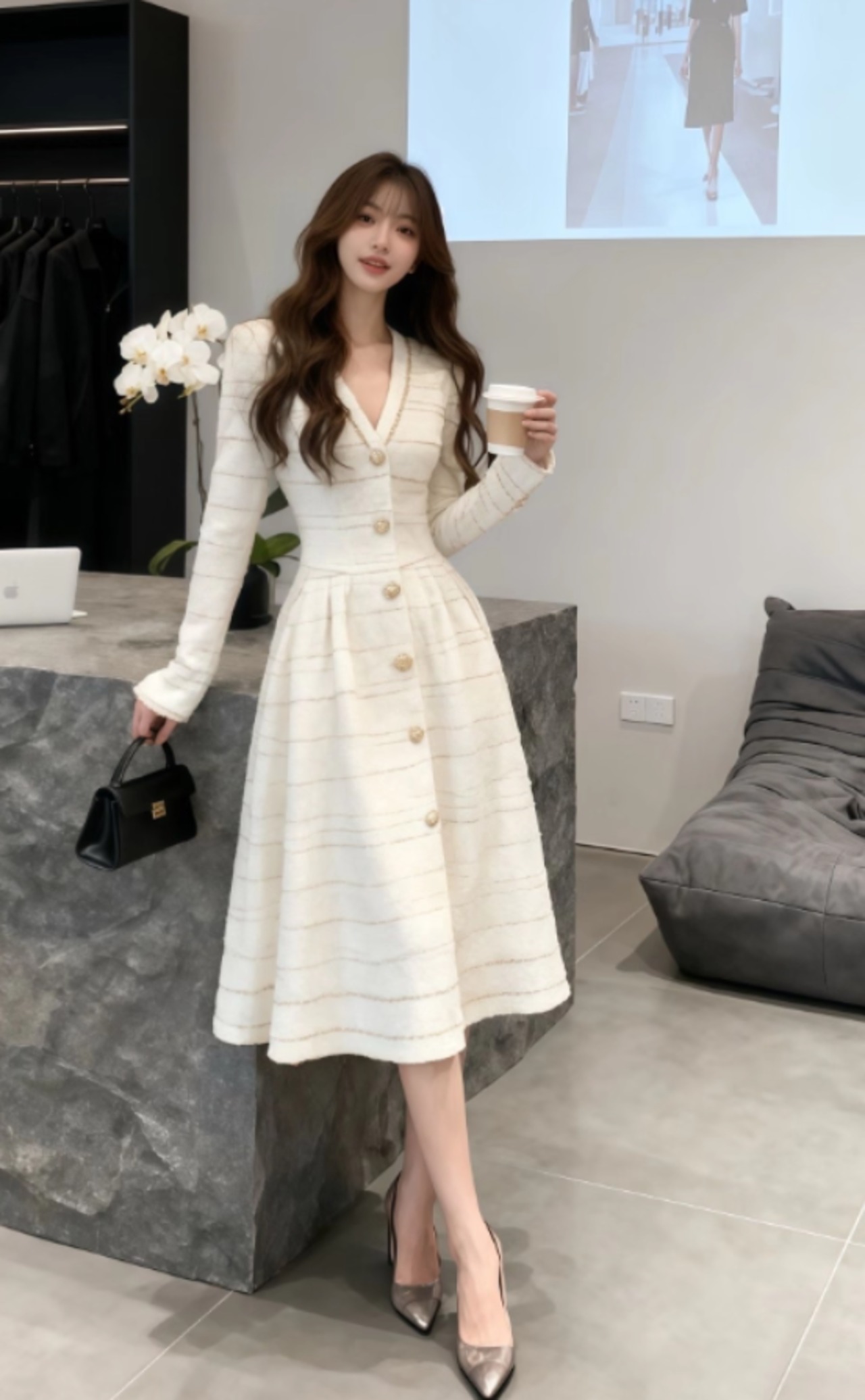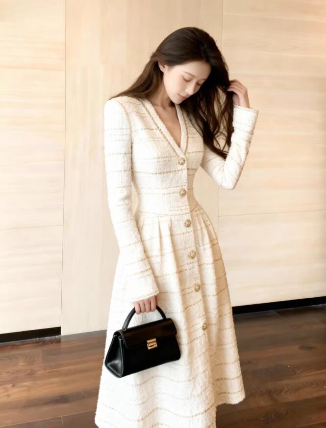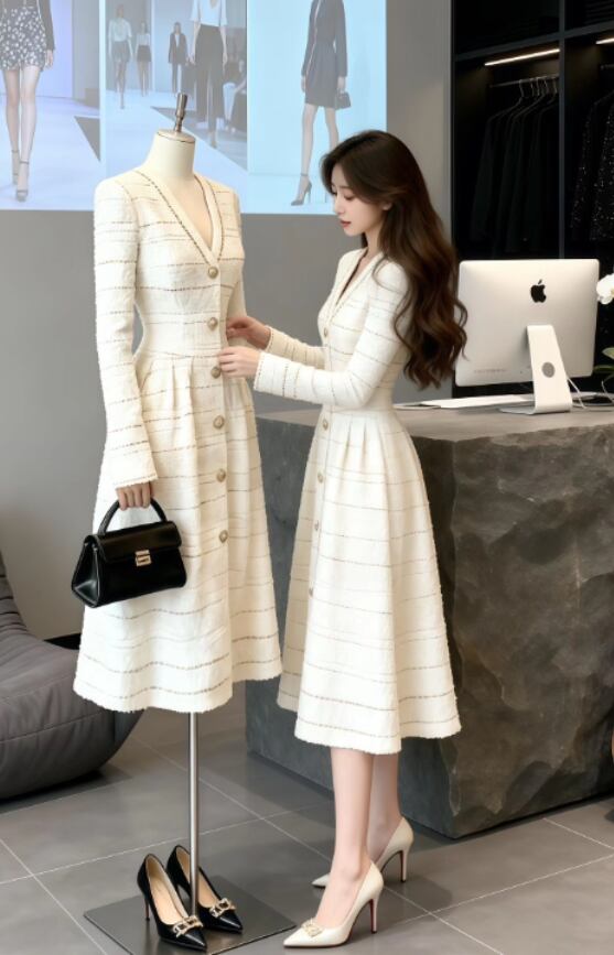 すっきりとしたラインが体型を美しく見せ、どんなシーンでもあなたを輝かせます。