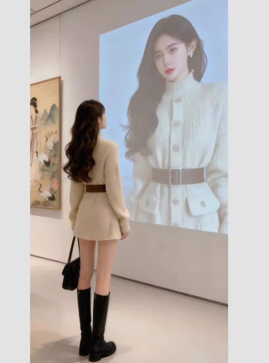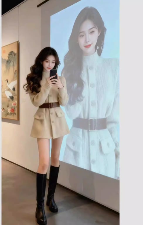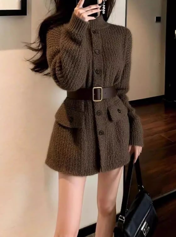 このニットワンピースは、韓国ファッションにインスパイアされたデザインで、シンプルながらも存在感を放ちます。