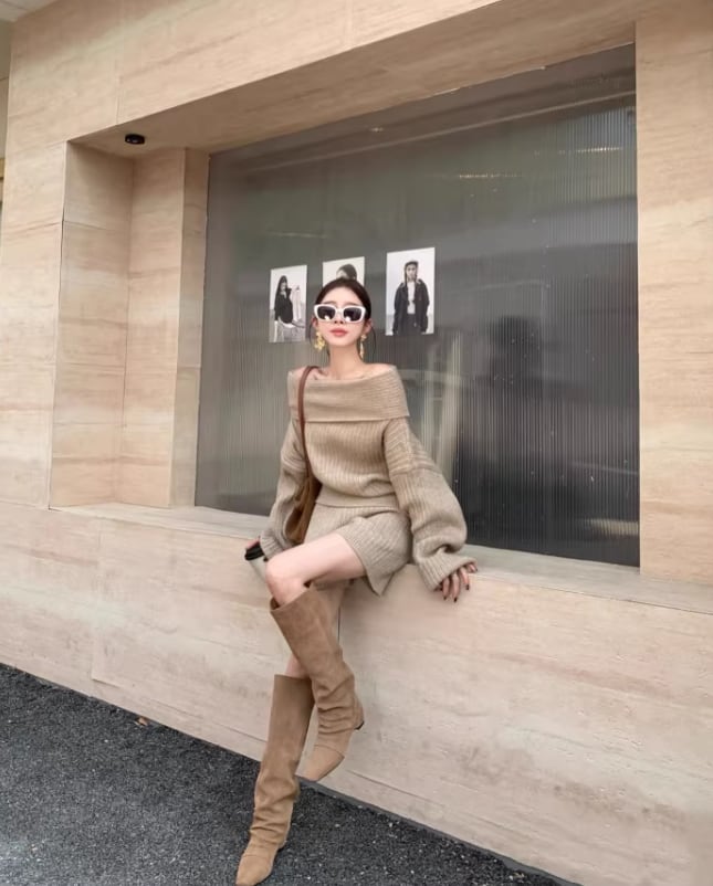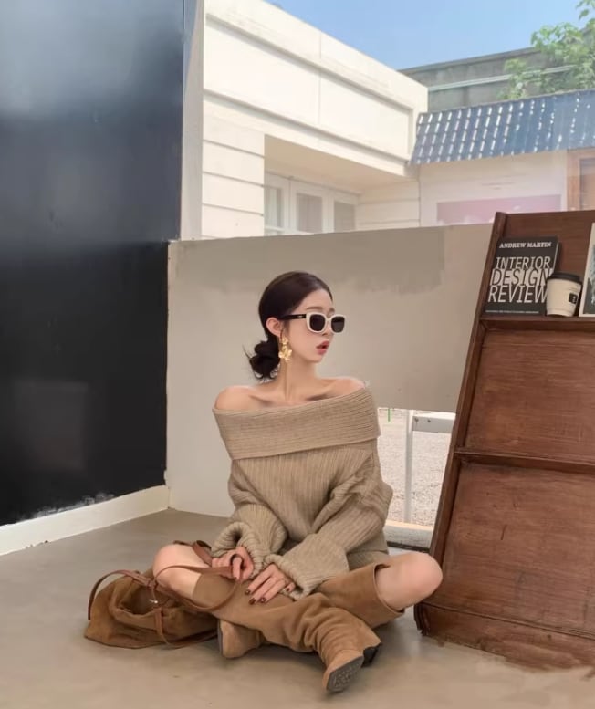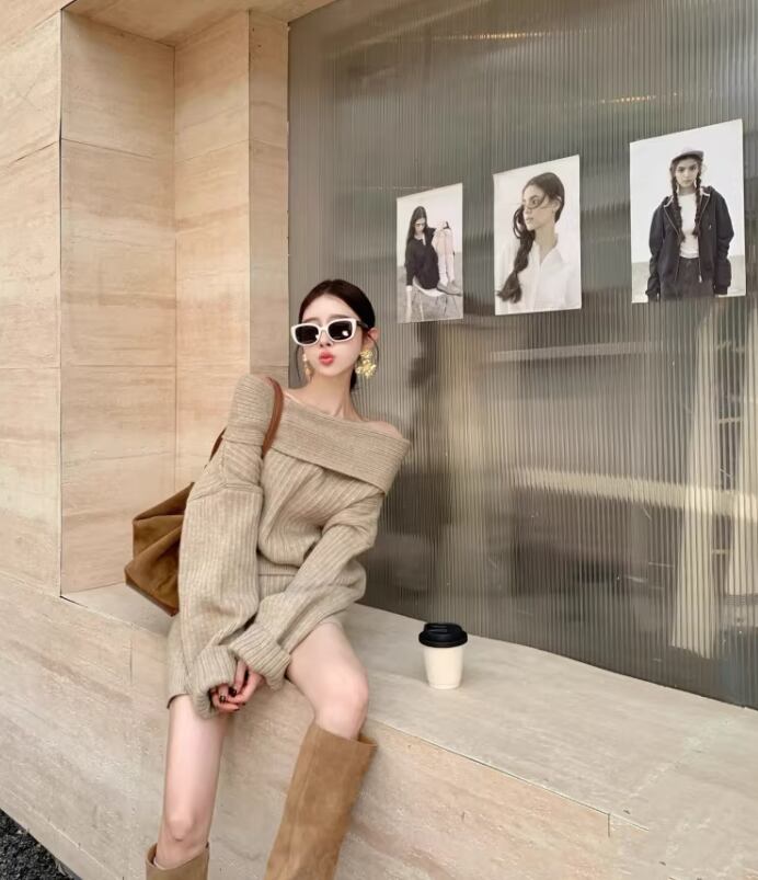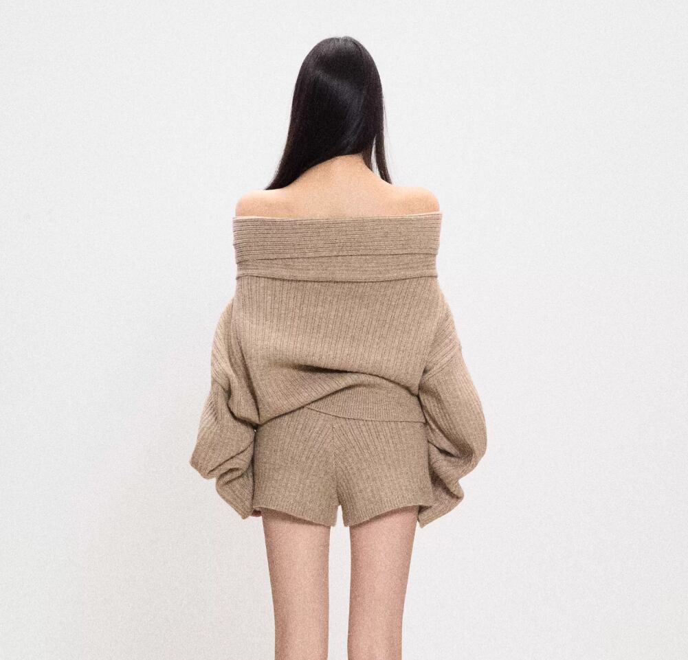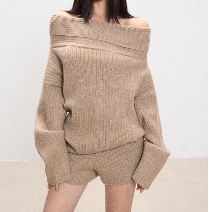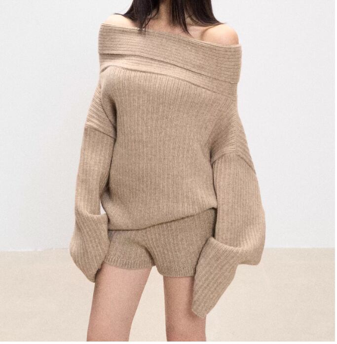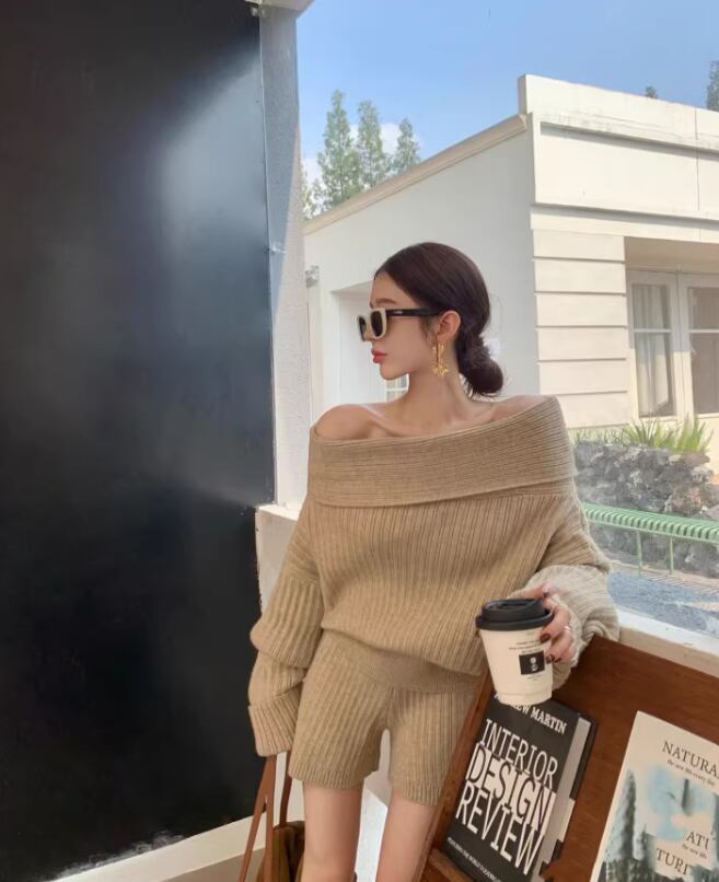 このオフショルニットとショーパンのセットアップは、ゆったりとしたデザインが特徴で、リラックスしたコーディネートを実現します!