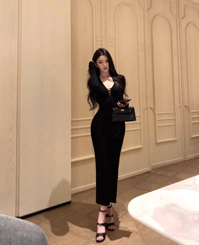 このレースアップロングタイトワンピースは、体のラインを美しく強調し、あなたのセクシーさを引き立てる魅力的なアイテムです!