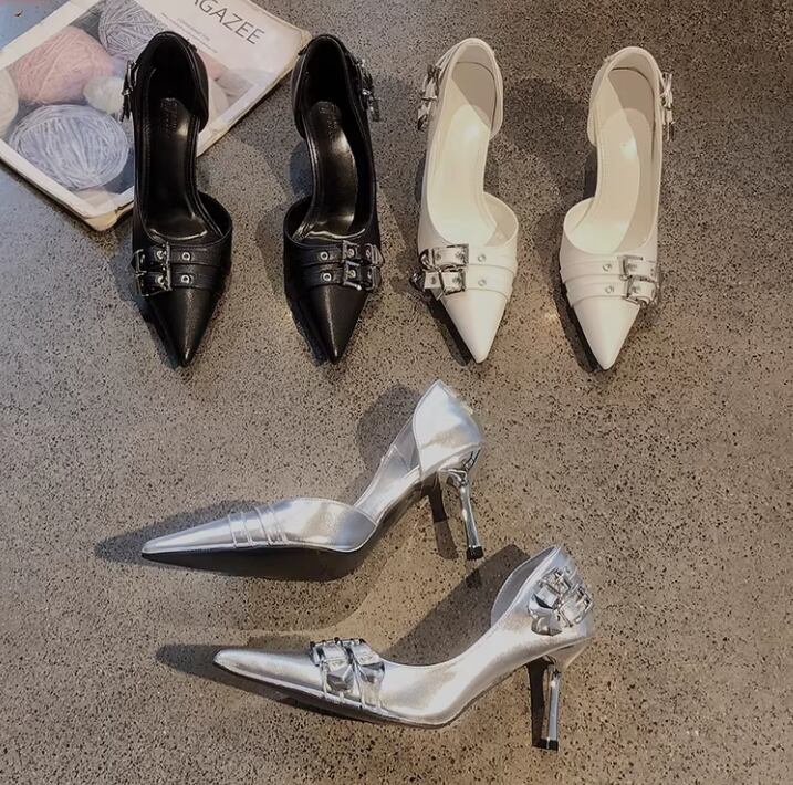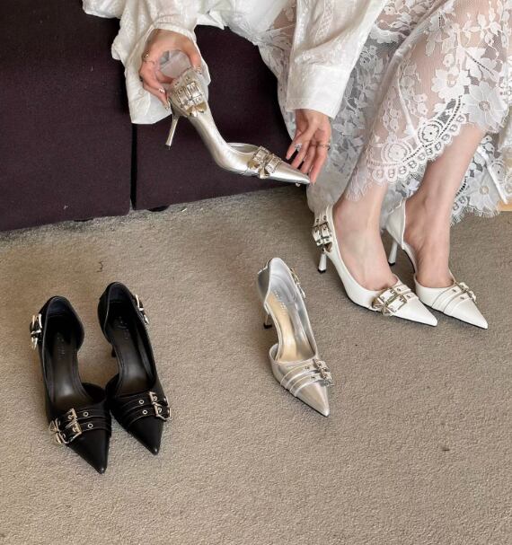 3color 8㎝ヒールで程よく盛れる♡ベルトバックルデザインピンヒールパンプスで、あなたのファッションにさらなる魅力をプラスしましょう!