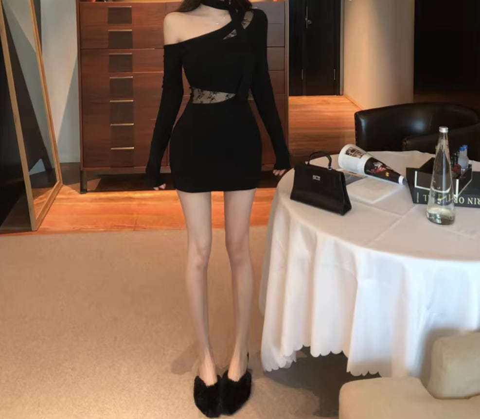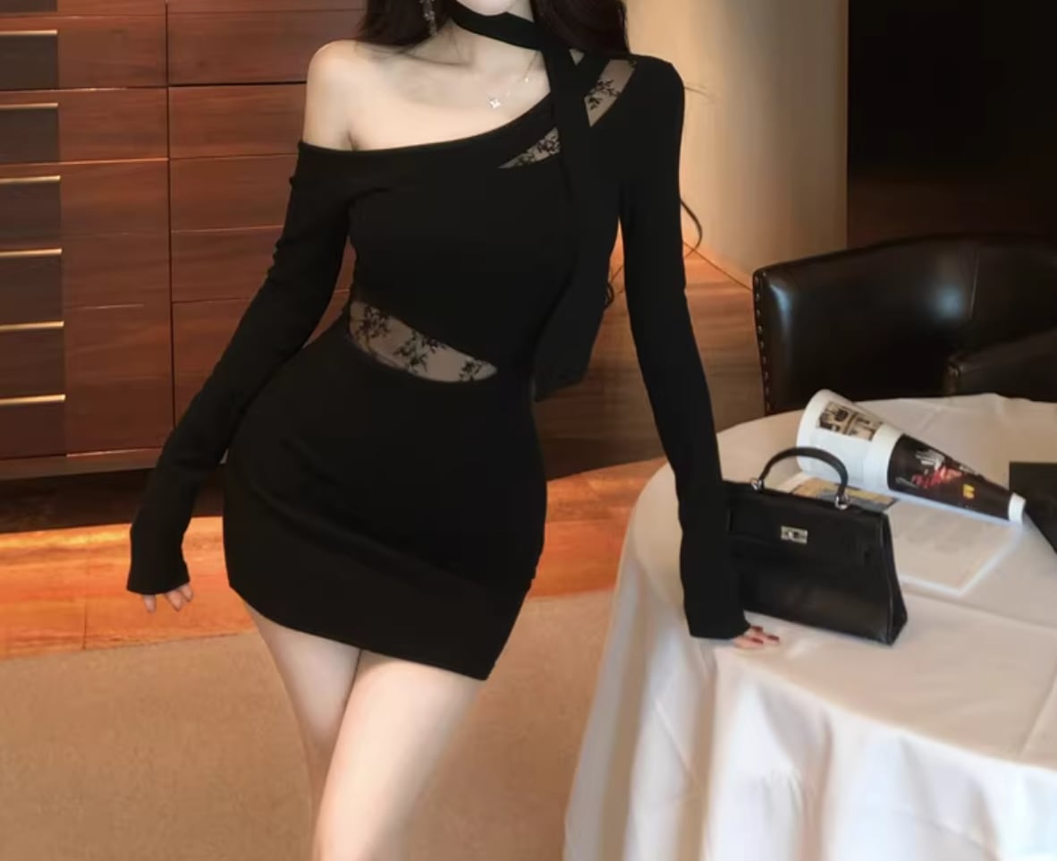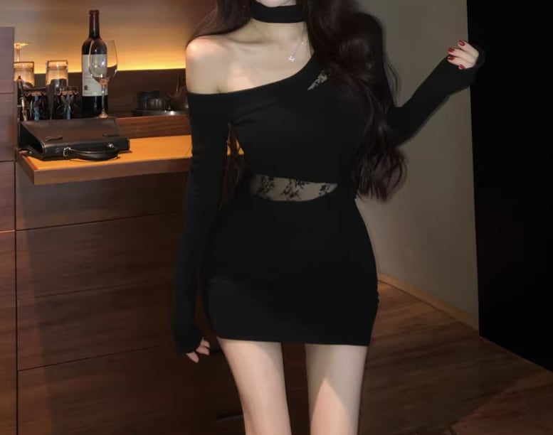 さりげないレースデザインがセクシー♡チョーカータイトミニワンピ