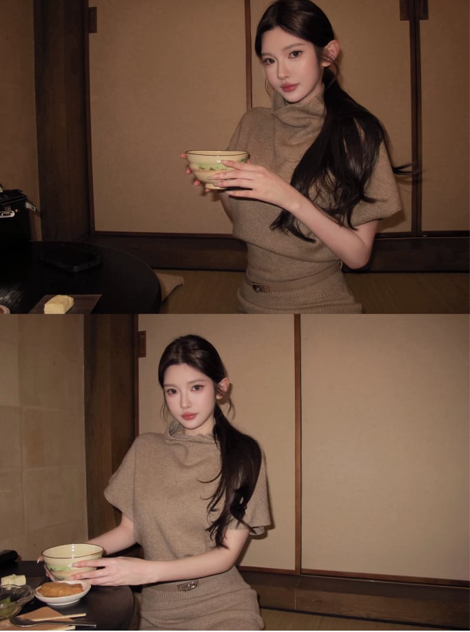 このハーフハイネックワンピースは、薄手のニット素材を使用し、女性らしさを引き立てるシルエットが魅力です!