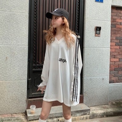 オーバーサイズ☆スポーティー♪VネックロンT☆