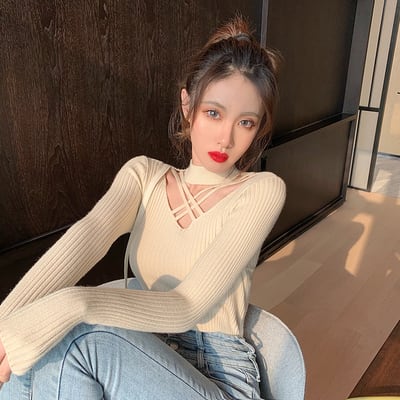 2coror ホルターネック☆クロスデザイン長袖トップス