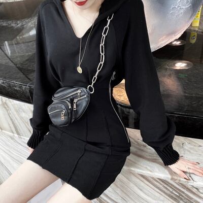 脚長効果抜群☆フード付きカジュアルワンピ♡