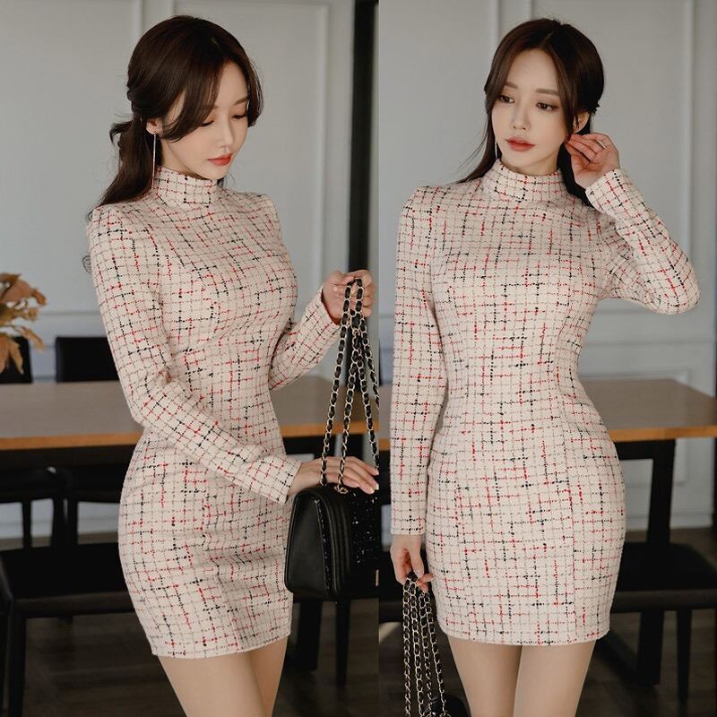 チェック柄♡ハイネックタイトワンピ