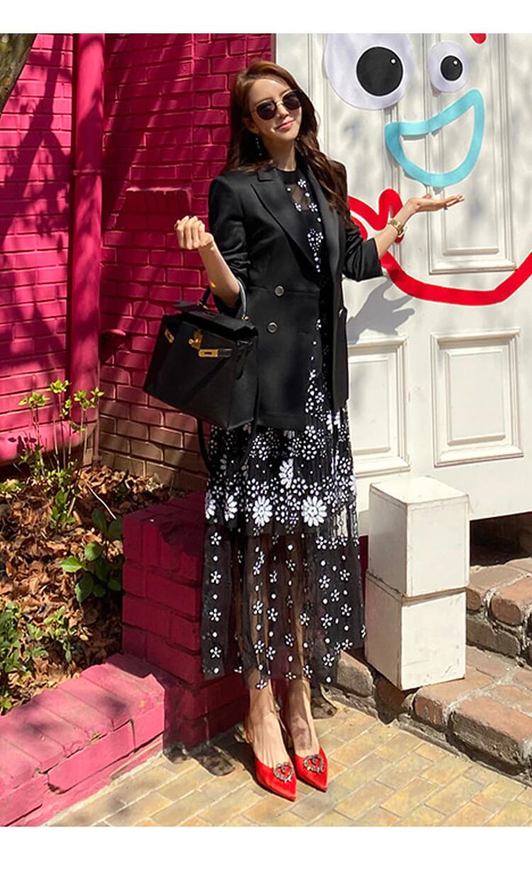S~Lサイズあり☆上品で華やか☆シースルーロングワンピ