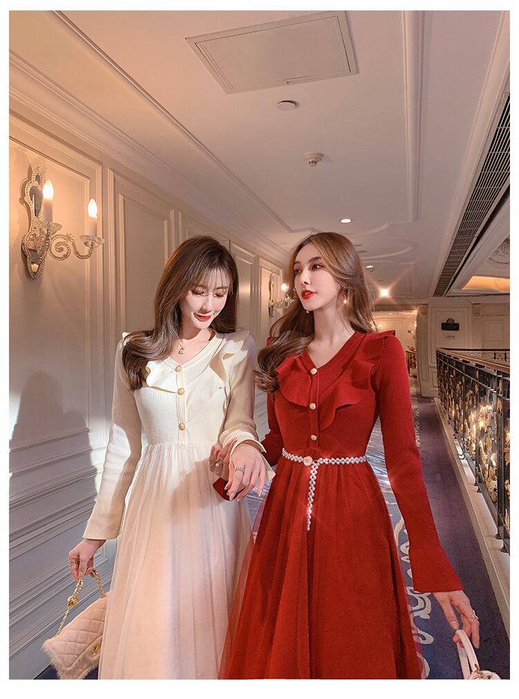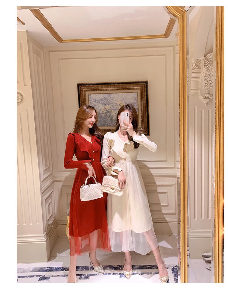 2color 1枚で華やか♥ニット×フレアロングワンピ