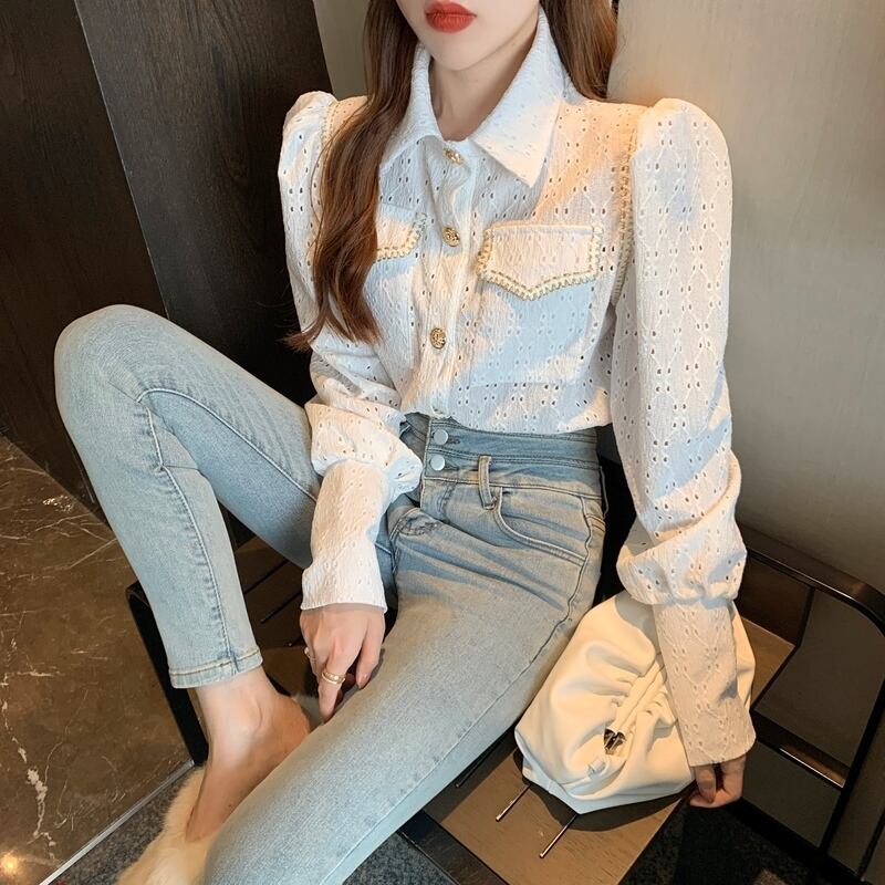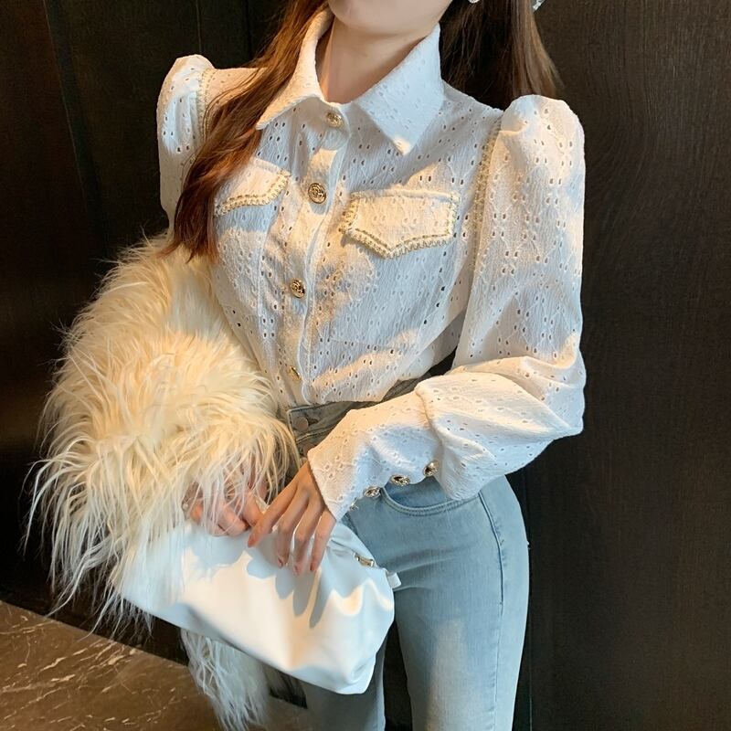 2color ゴールドボタン上品ブラウス