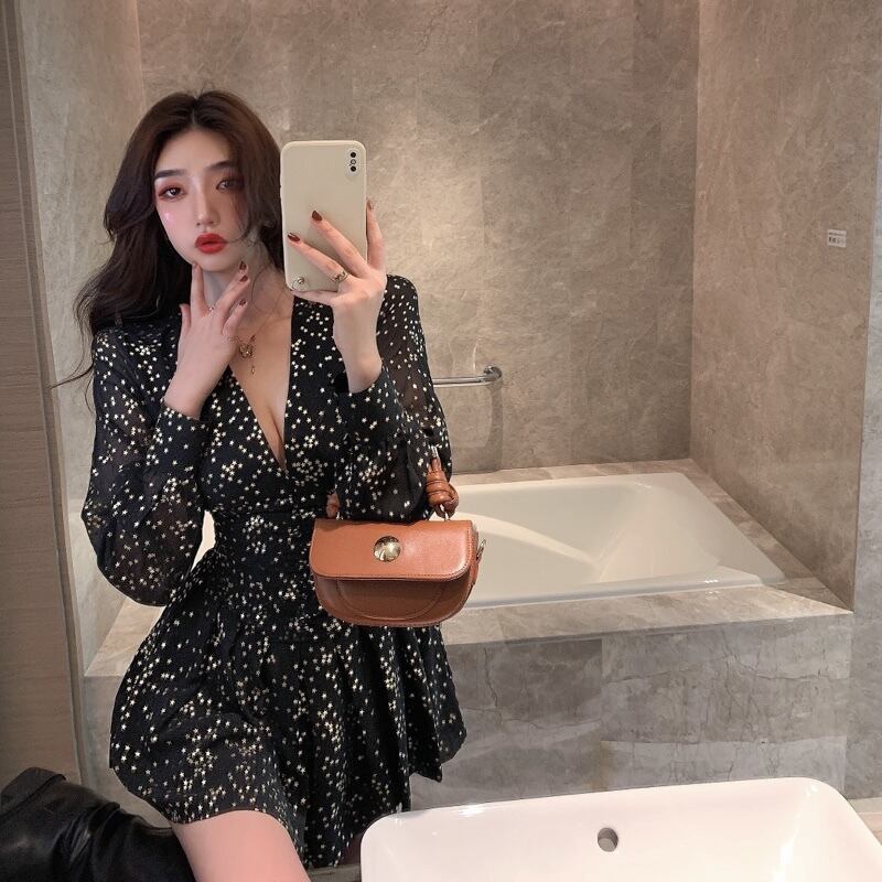 #星柄コーデ #ギャル服 #ギャルファッション #ギャルワンピ #お洒落女子 #ミニワンピ #ミニスカコーデ #Vネックワンピ #フレアワンピ #美脚女子コーデ #デートワンピ #谷間見せワンピ