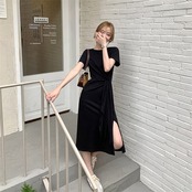 #ロングワンピース #レディース半袖 #スリット入りワンピース #お洒落ワンピース #夏ワンピース #らくちんワンピース #カジュアル女子 #ギャルワンピ #ギャルファッション #お出掛けワンピース #リモートワークコーデ #在宅ワークコーデ #韓国プチプラファッション #肌みせワンピース #オルチャンファッション