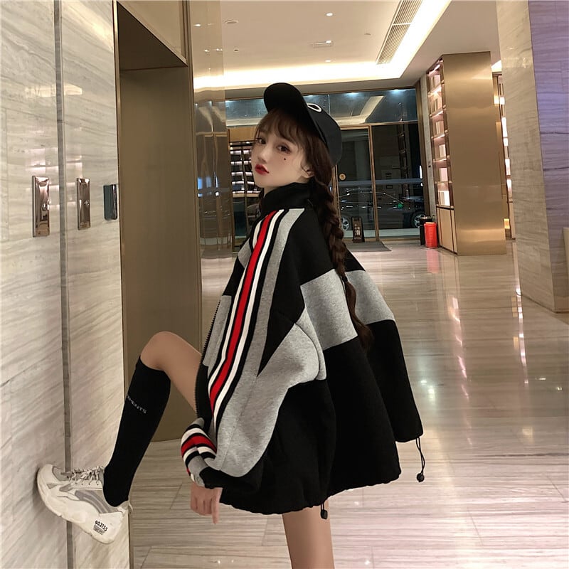 2color スポーティー☆オーバーサイズサイドラインパーカー