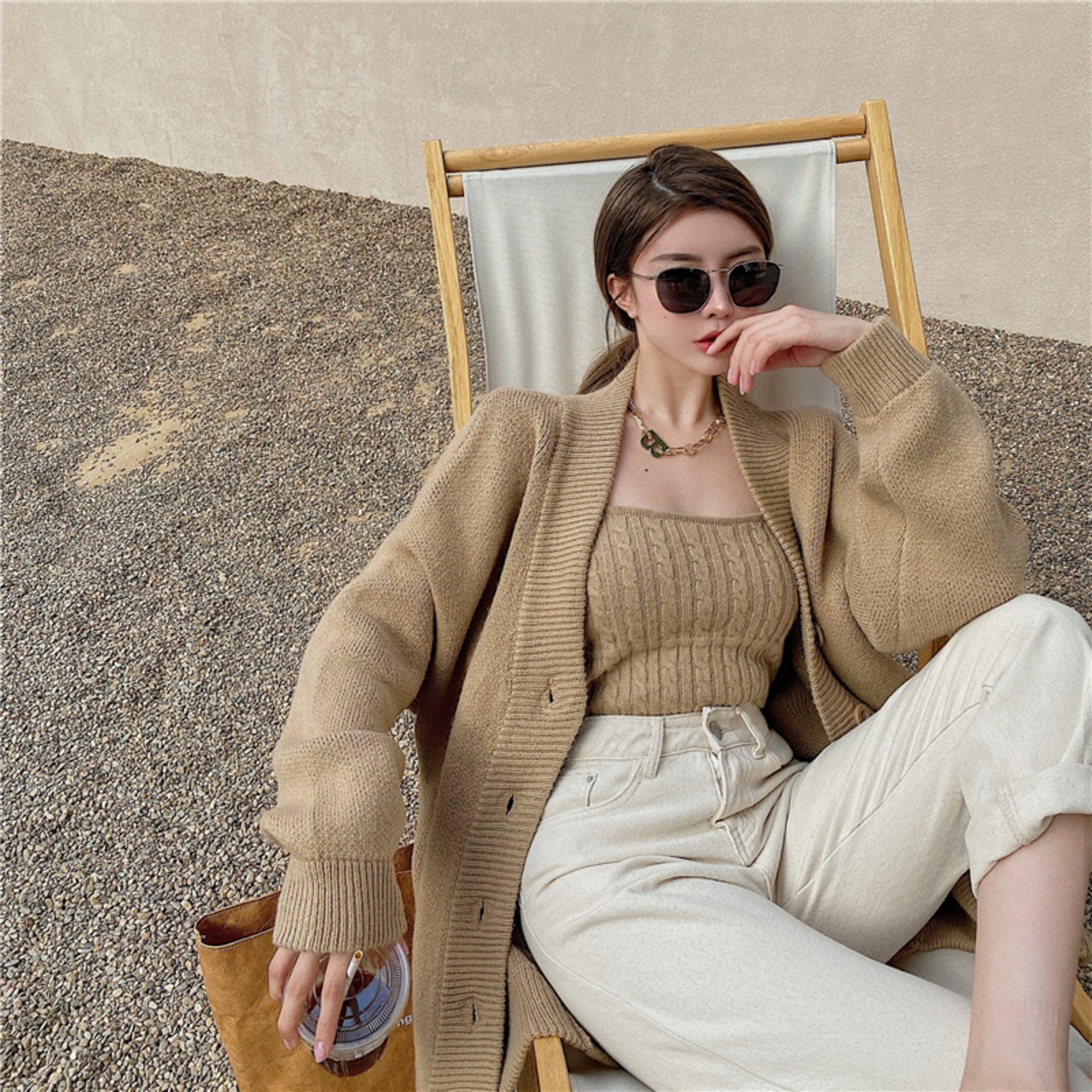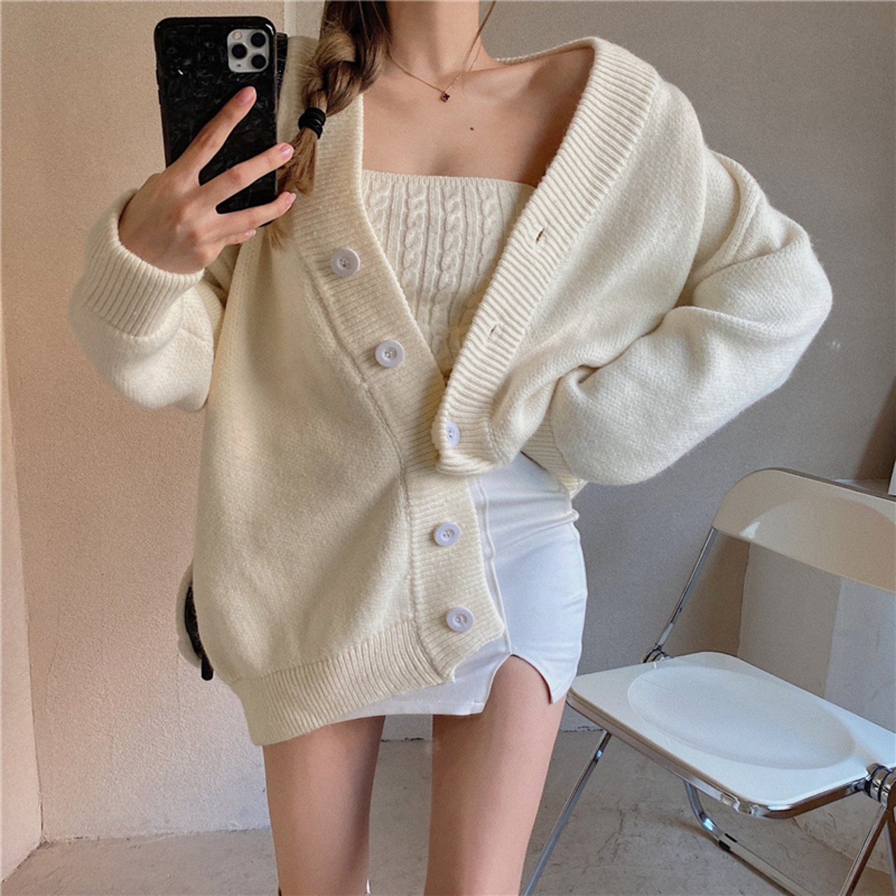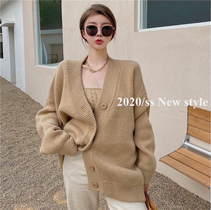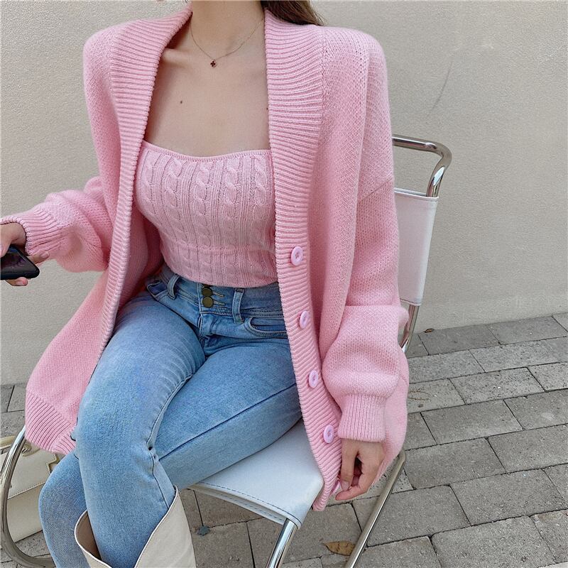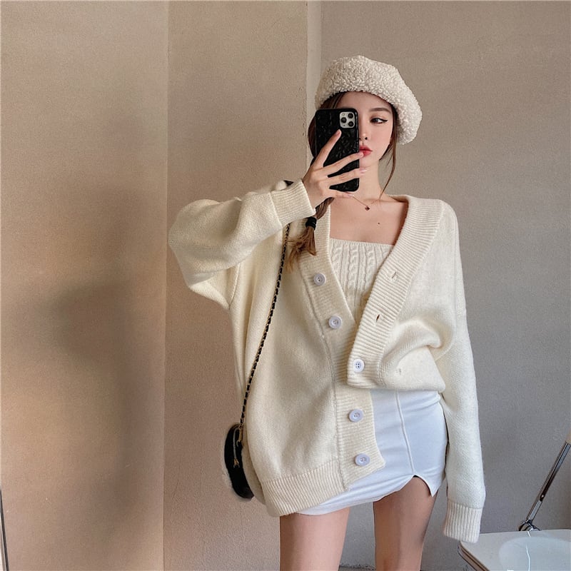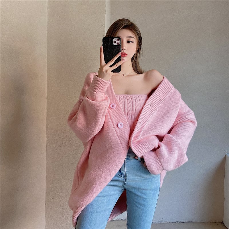 3color ベアトップ+ニットカーディガンセット