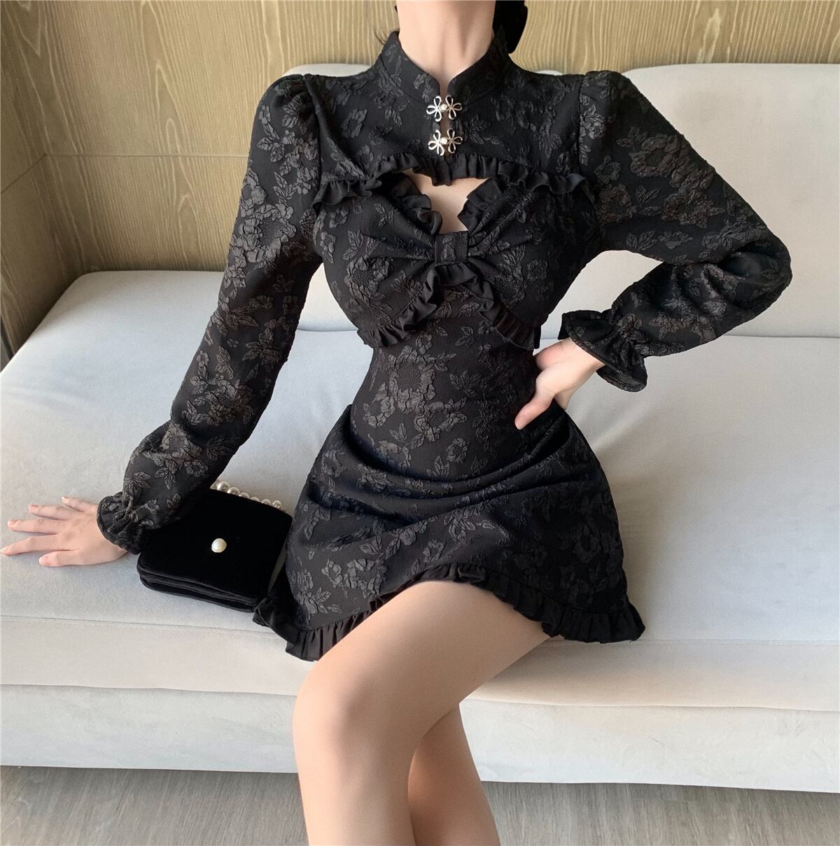 #チャイナドレス #ミニワンピース #長袖ワンピース #タイトワンピ #韓国ファッション #中国ファッション #キャバ嬢ドレス #お呼ばれドレス #店内ドレス #クラブドレス #ラウンジワンピ #ラウンジドレス #キャバクラドレス #ブラックワンピ #花柄ワンピ