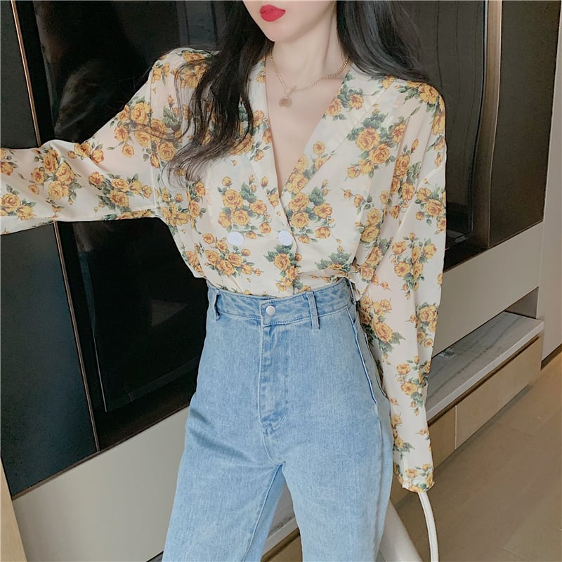#春シャツ #春ファッション #春コーデ #トレンドファッション #こなれ感コーデ #プチプラファッション #海外ファッション #細見えシャツ #お尻が隠れる丈 #お尻が隠れるシャツ #華奢見えシャツ #花柄ファッション #お洒落ファッション #オルチャンファッション #韓国トレンドファッション #韓国コーデ #韓国プチプラファッション #イエローコーデ #黄色い花柄シャツ #花柄ブラウス