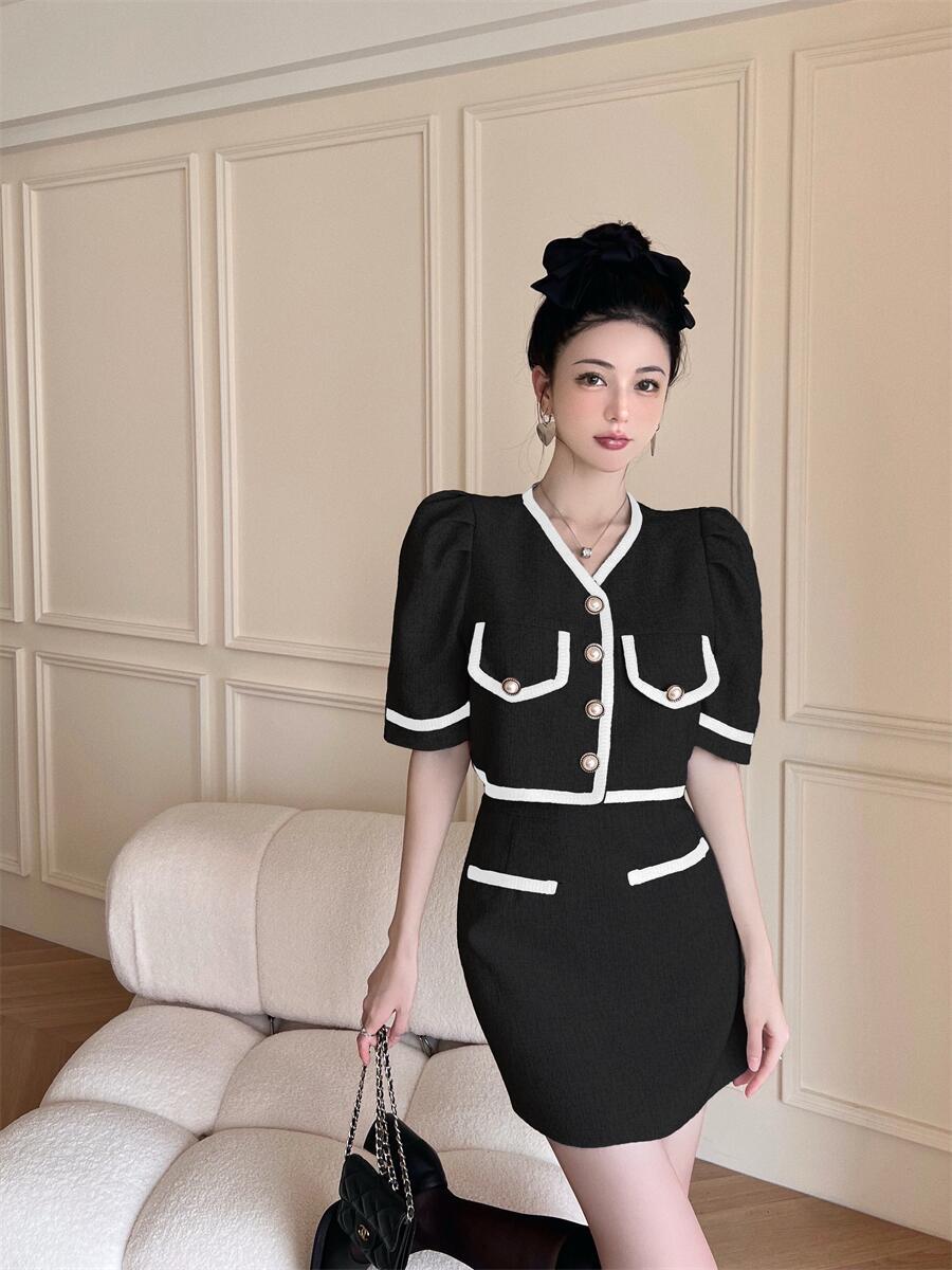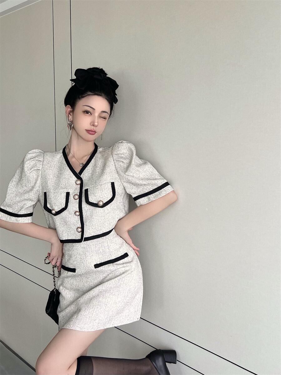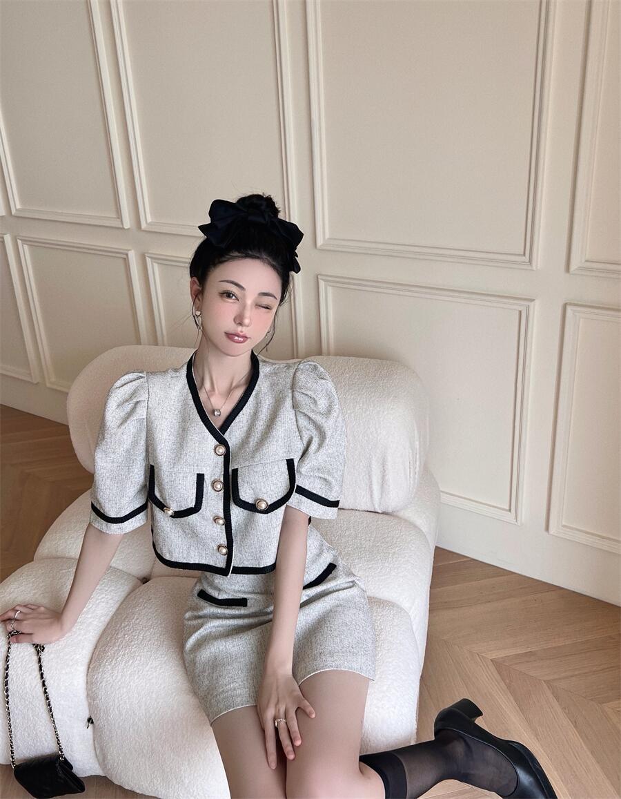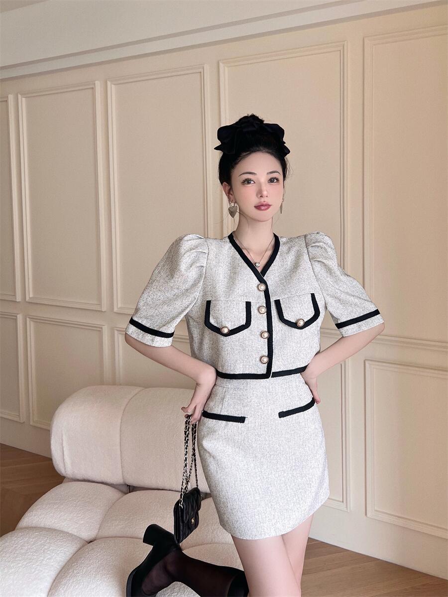 2color プチプラ高見え♡パールボタン半袖トップス+ミニスカートセットアップ
