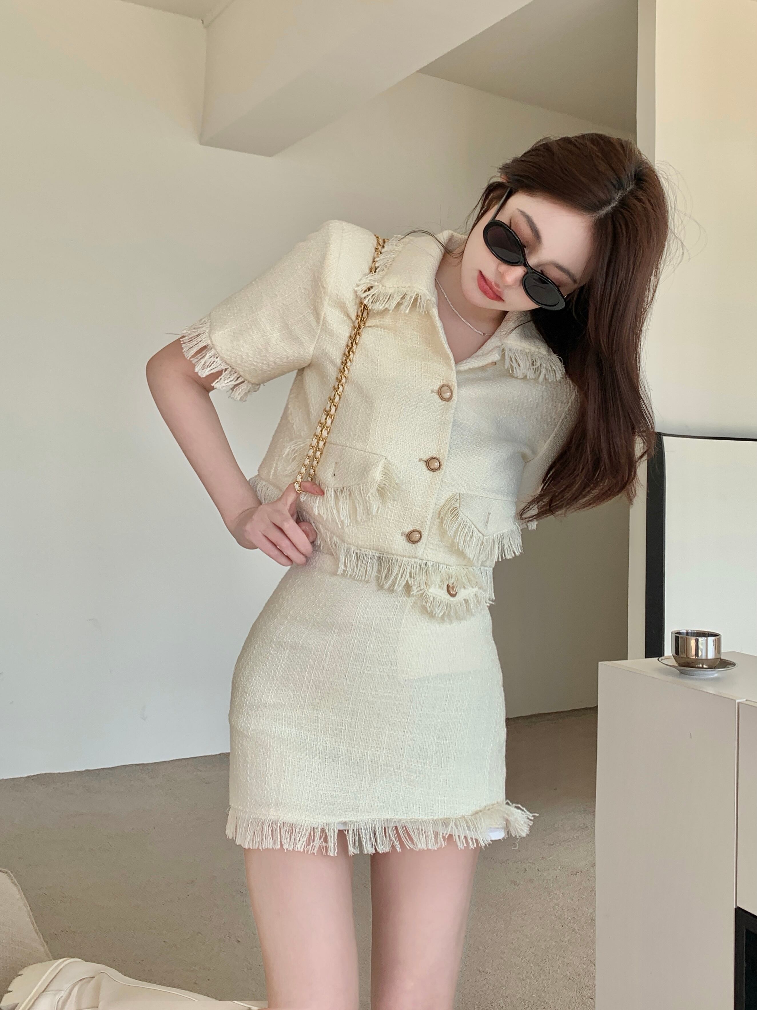フリンジがかわいい♡半袖トップス+ミニスカセットアップ