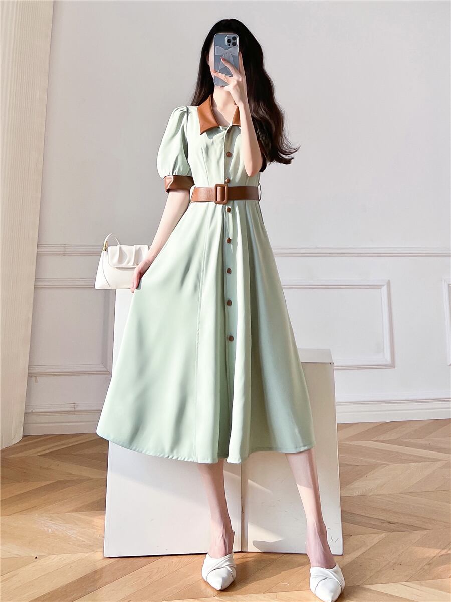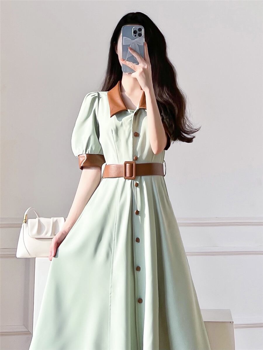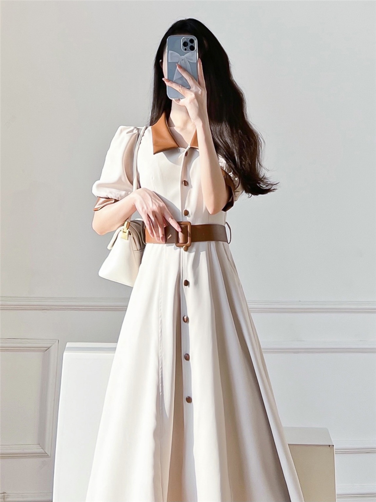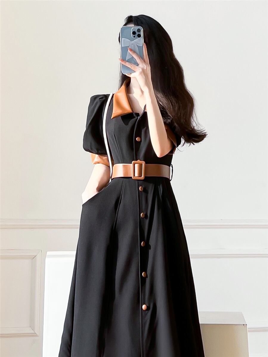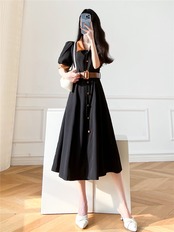 3color 大きいサイズ有り♪レトロかわいい♡異素材mix半袖ロングワンピ