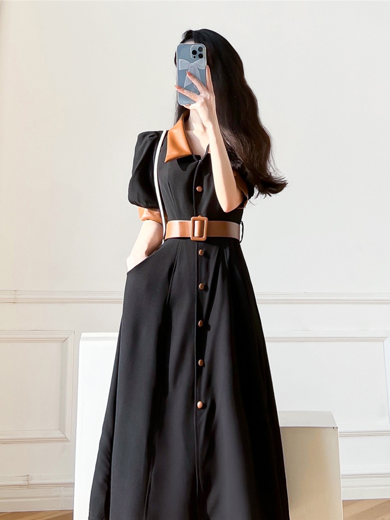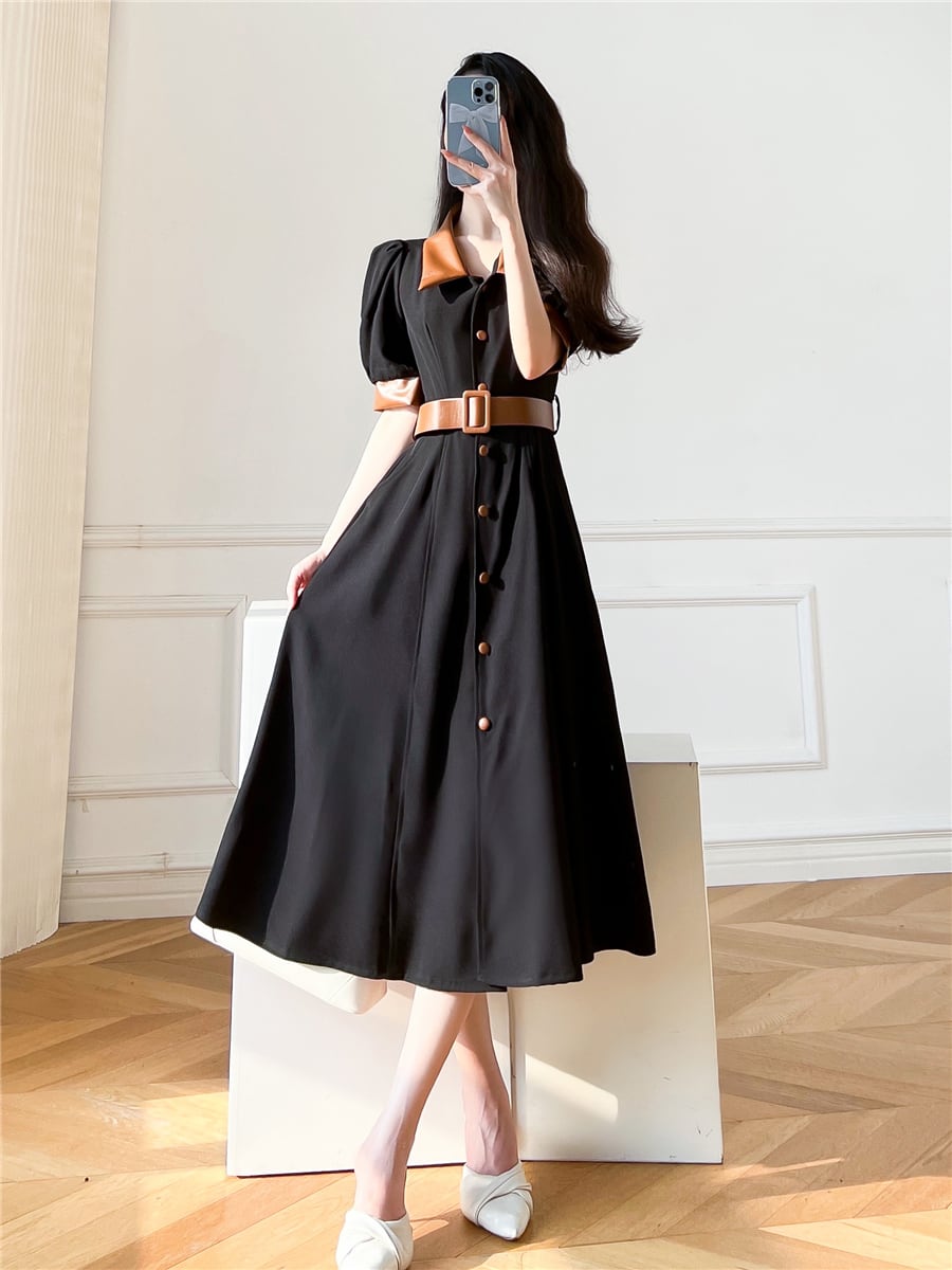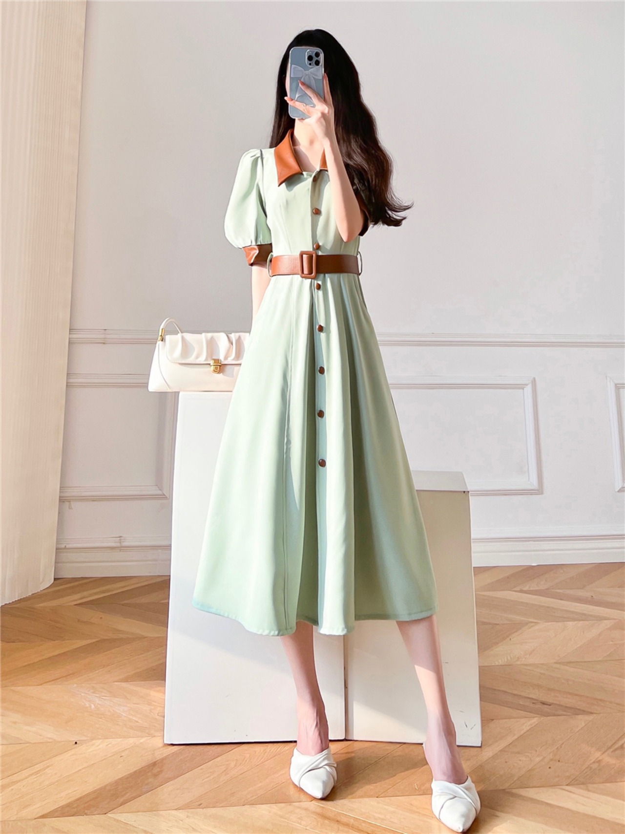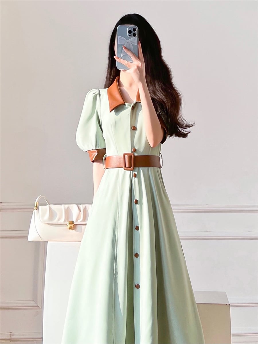 3color 大きいサイズ有り♪レトロかわいい♡異素材mix半袖ロングワンピ