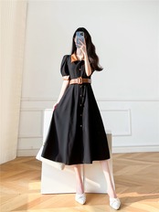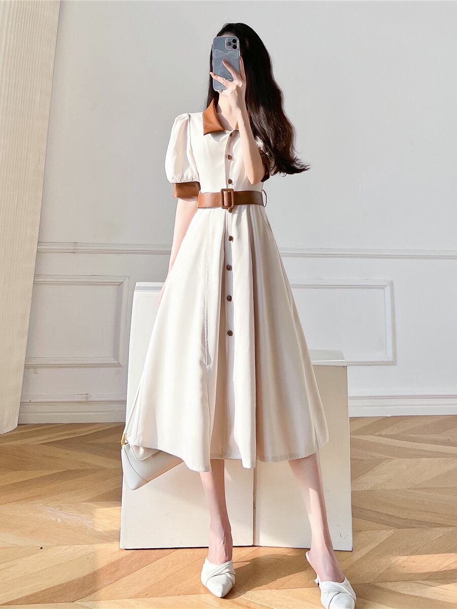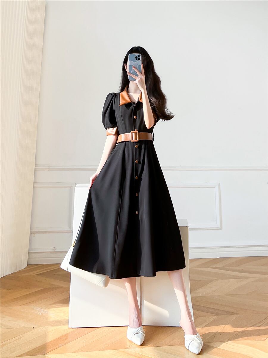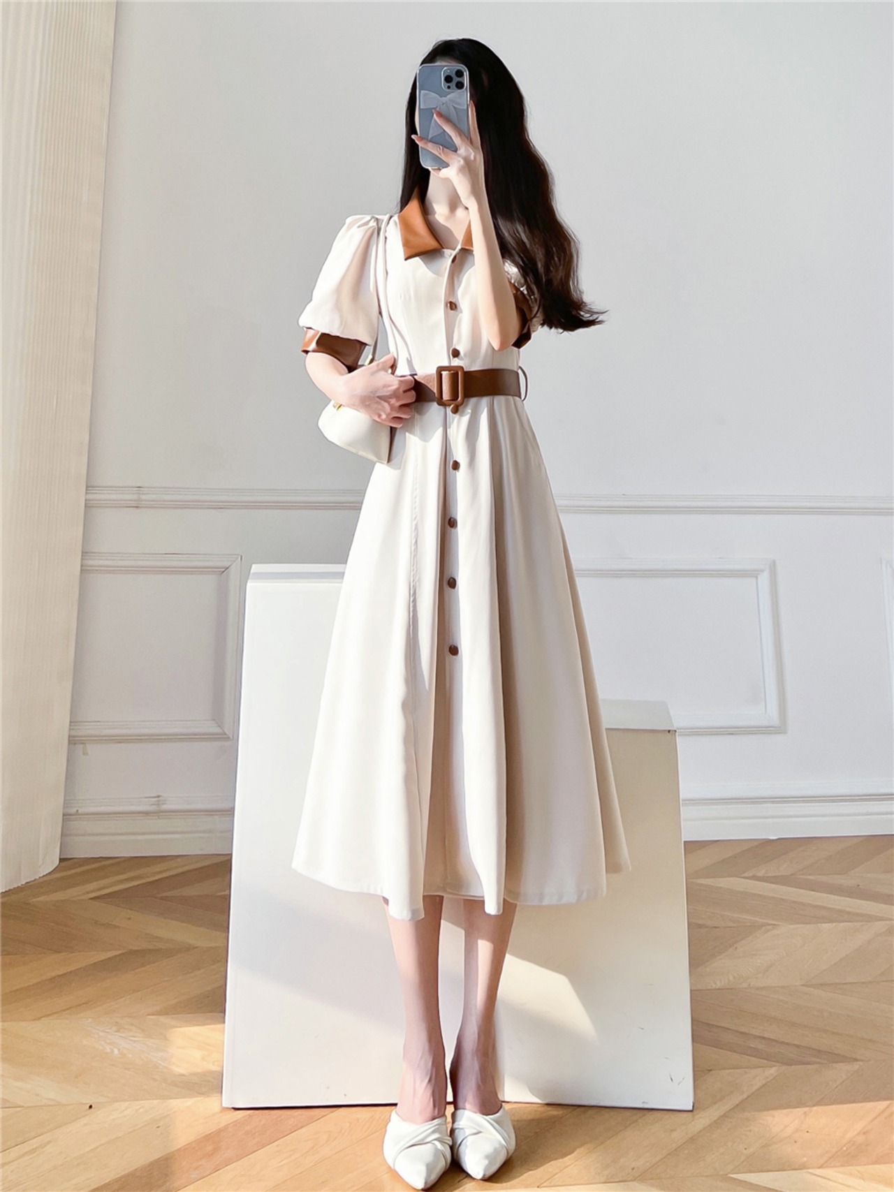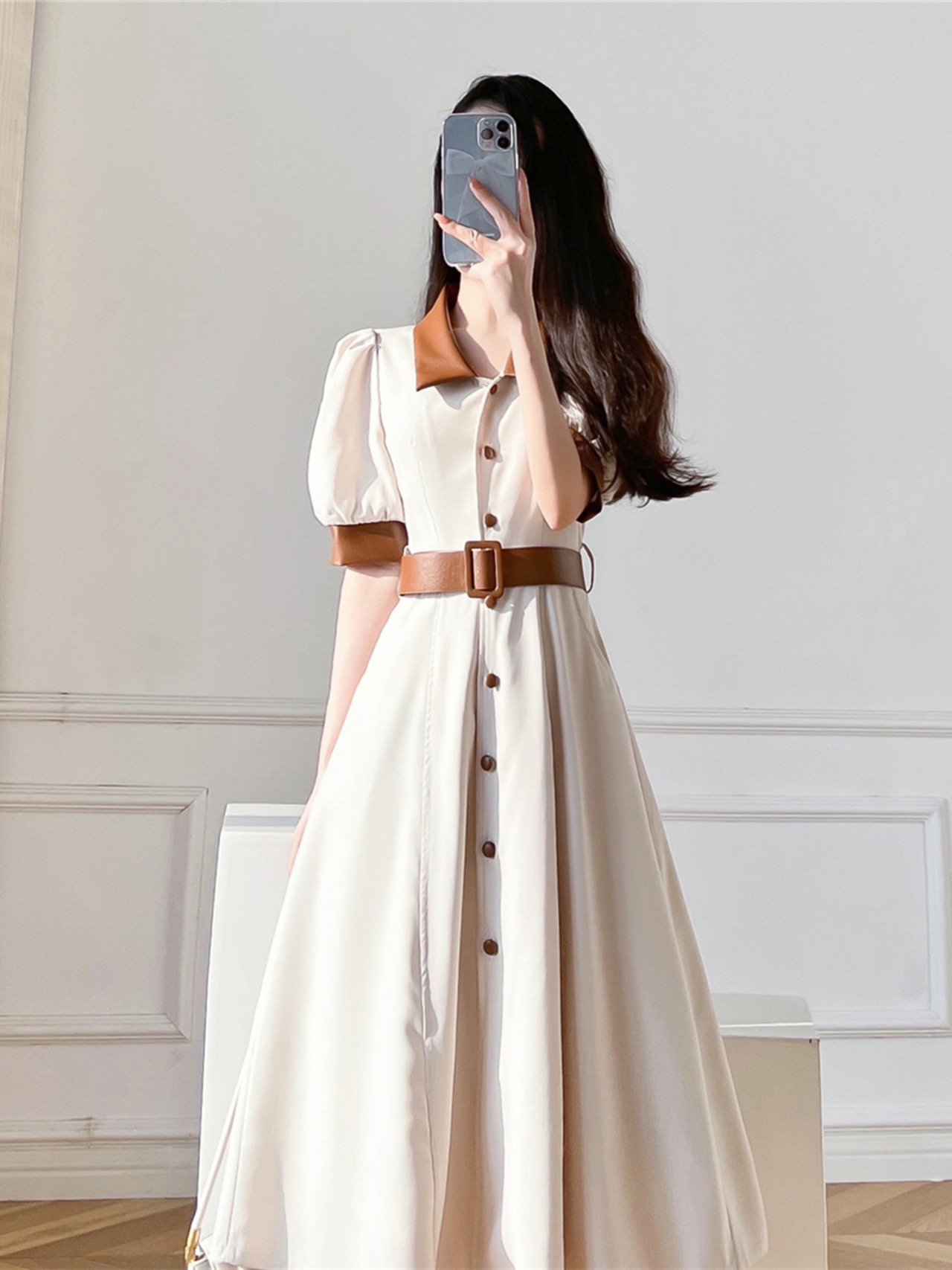 3color 大きいサイズ有り♪レトロかわいい♡異素材mix半袖ロングワンピ