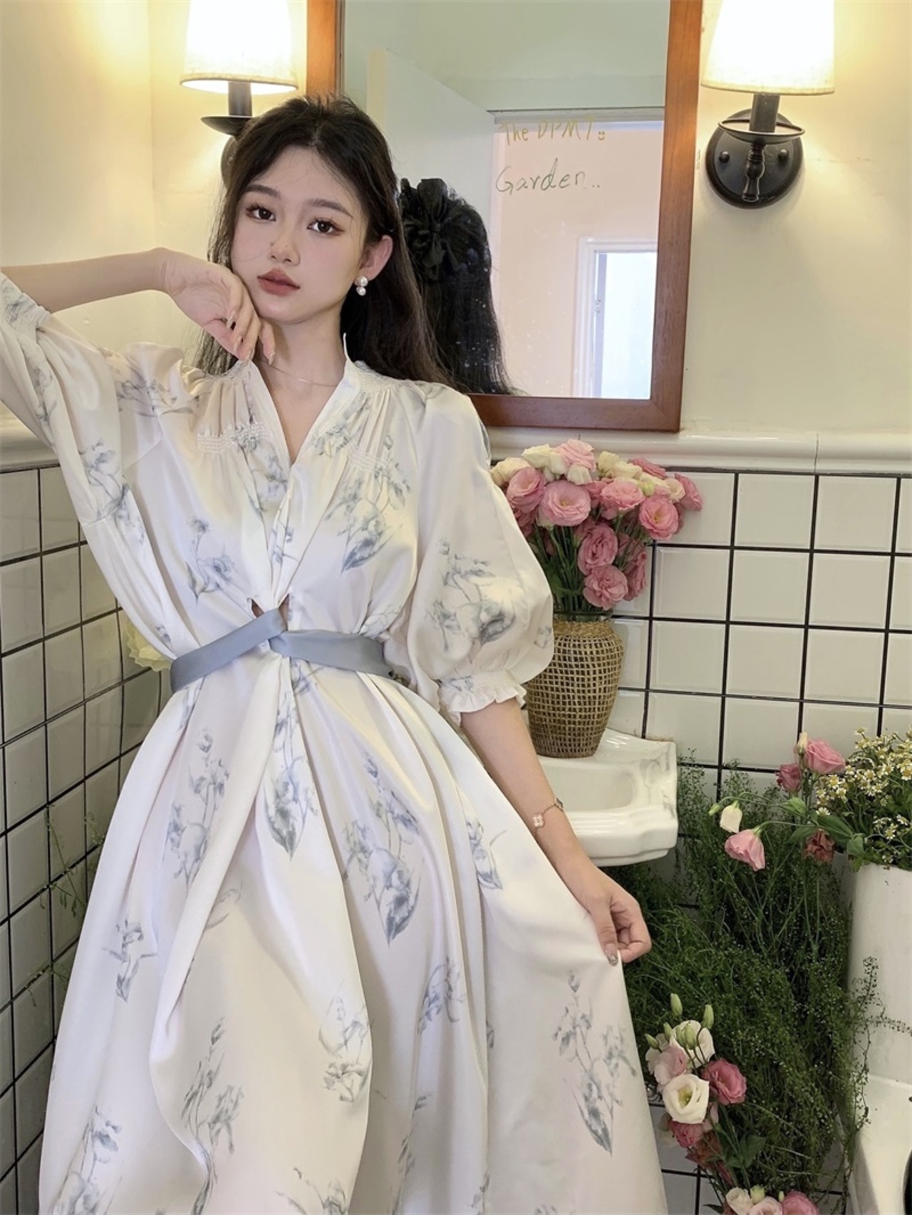 #きれいめワンピ #ロングワンピース #シャツワンピ #エレガントワンピ #上品ワンピ #大人ワンピ #体型カバーワンピ #花柄ワンピ #爽やかワンピ #五分丈袖 #ドルマンシャツワンピ #二の腕カバーワンピ #プチプラ高見えファッション #大人かわいいワンピース