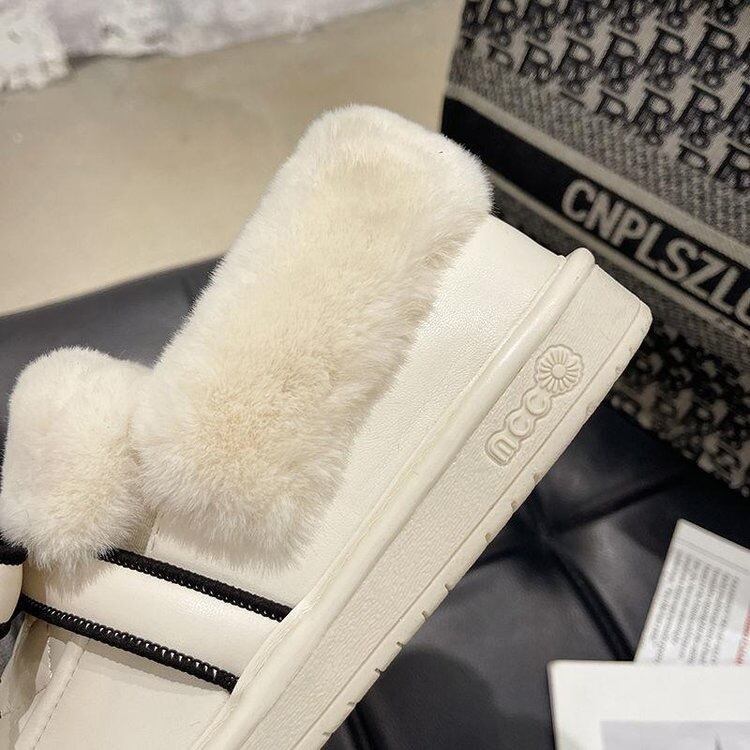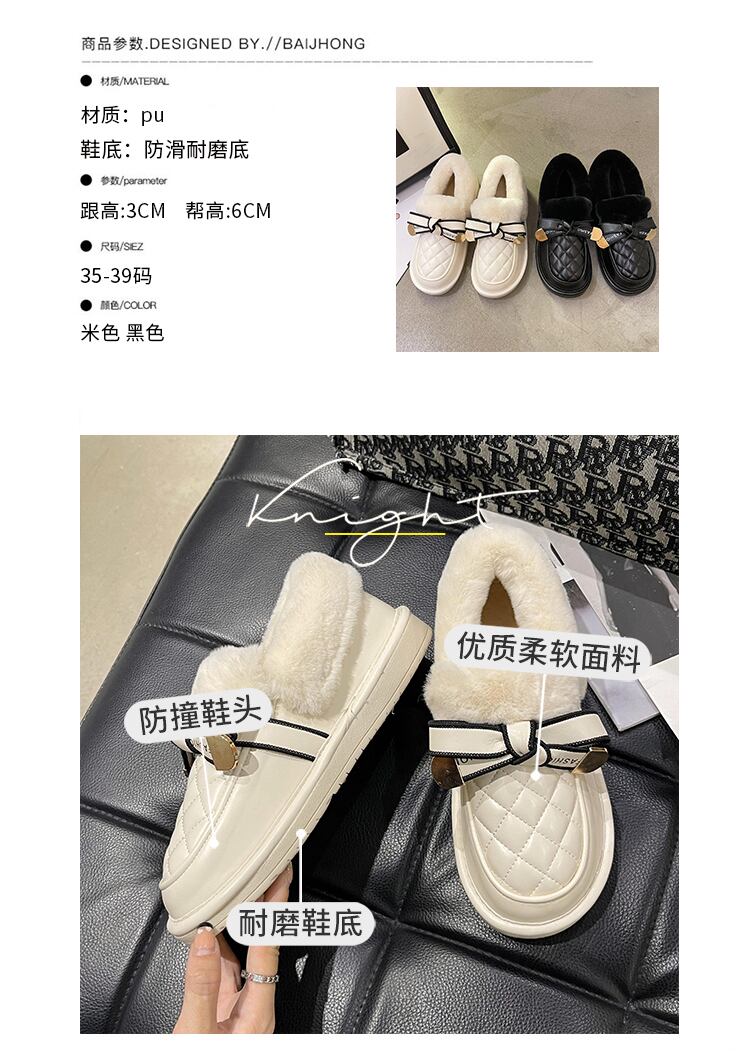 2color あたたかいモコモコファー♡ロゴリボンキルティングシューズ