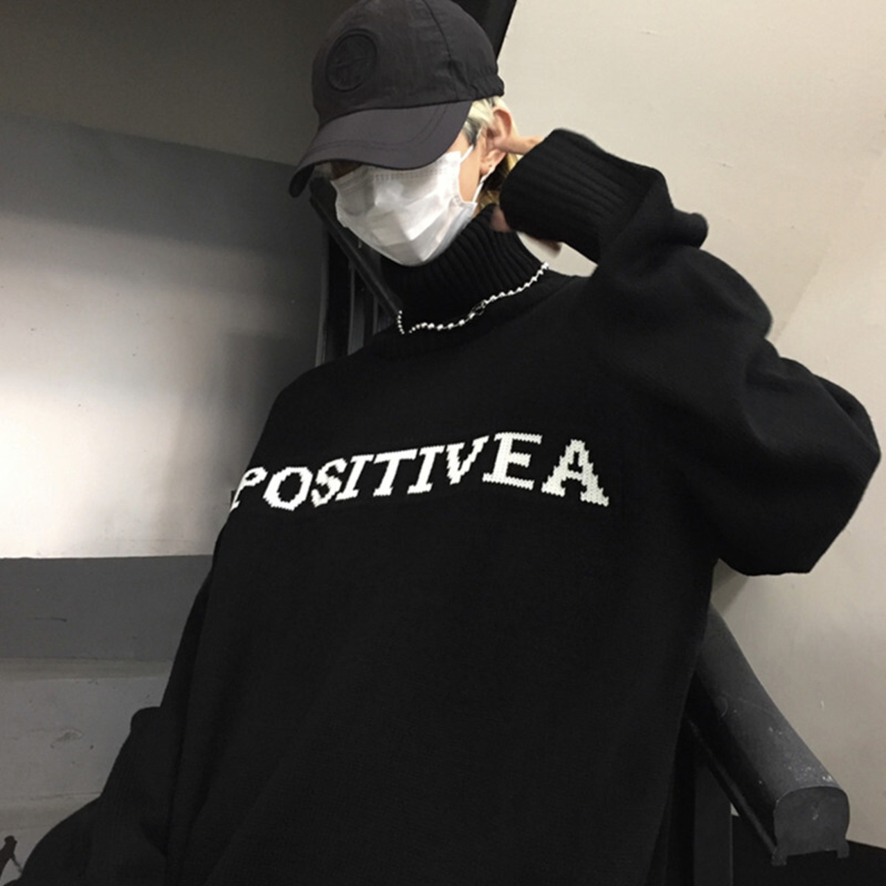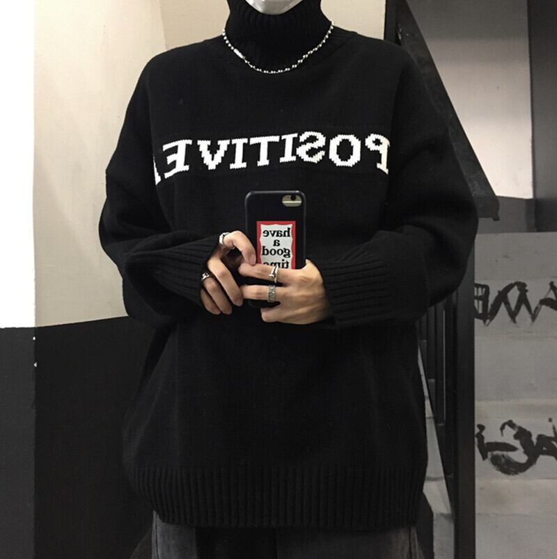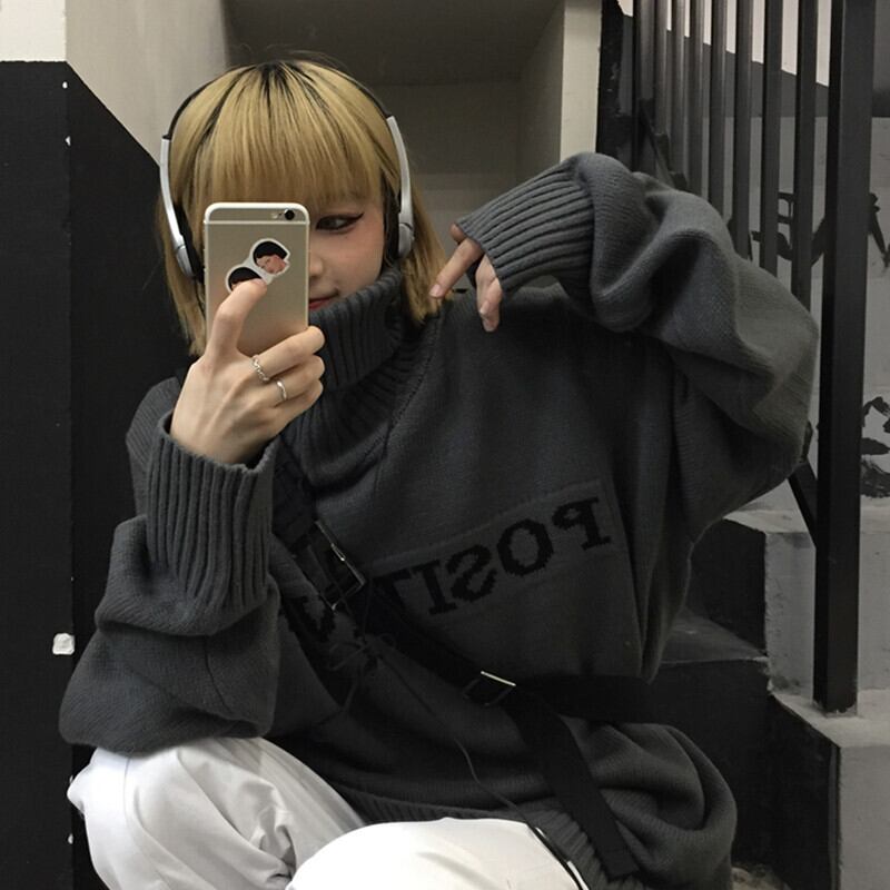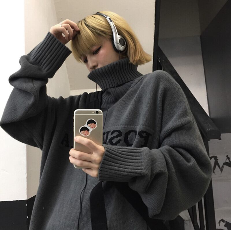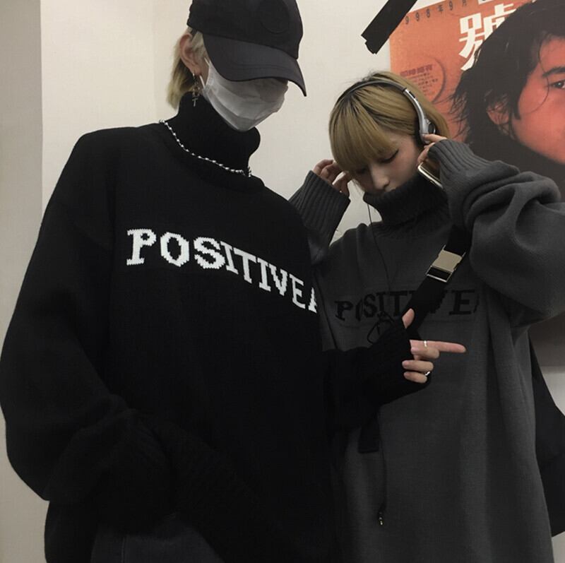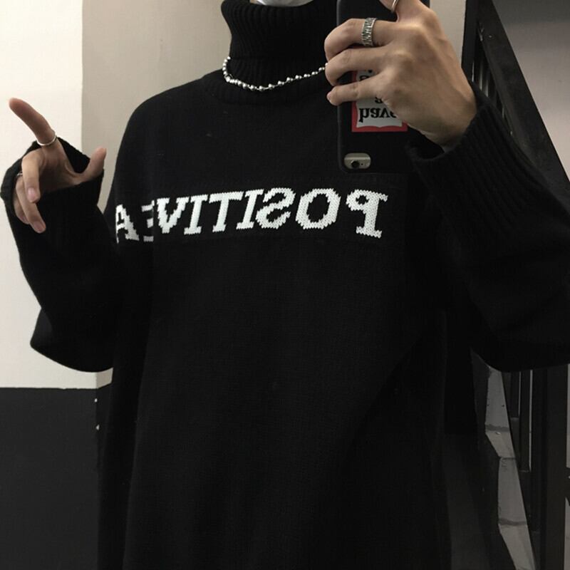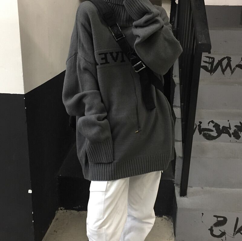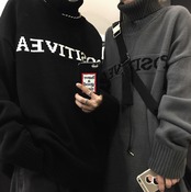 2color 韓国トレンド♡タートルネックモノトーンロゴニット