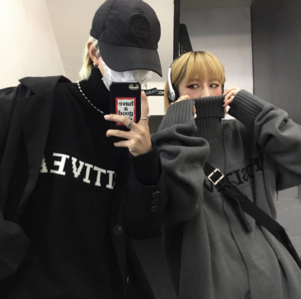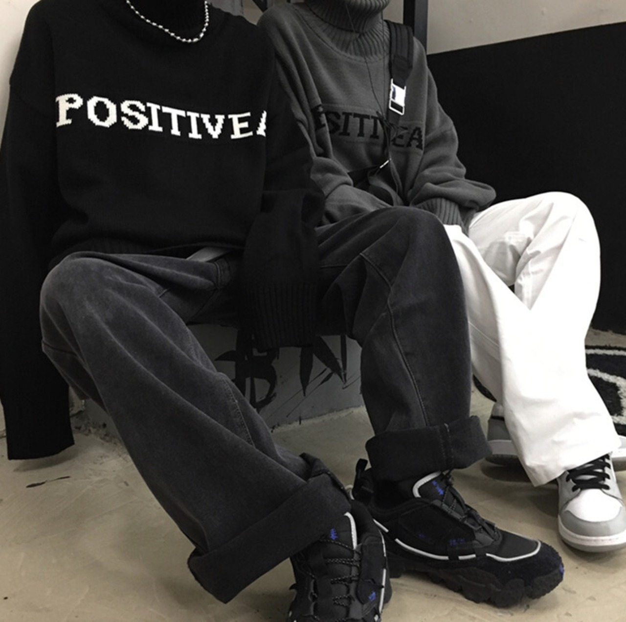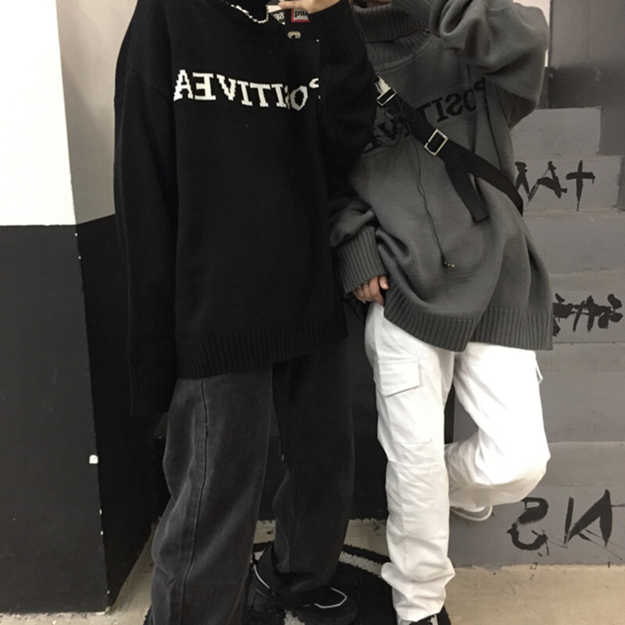 #韓国モノトーンコーデ #モノクロコーデ #韓国トレンドファッション #リンクコーデ #お揃いコーデ #カップルコーデ #ペアルックコーデ #メンズライクファッション #ジェンダレスファッション #冬ニット #あったかニット #男女兼用ニット #ユニセックスニット