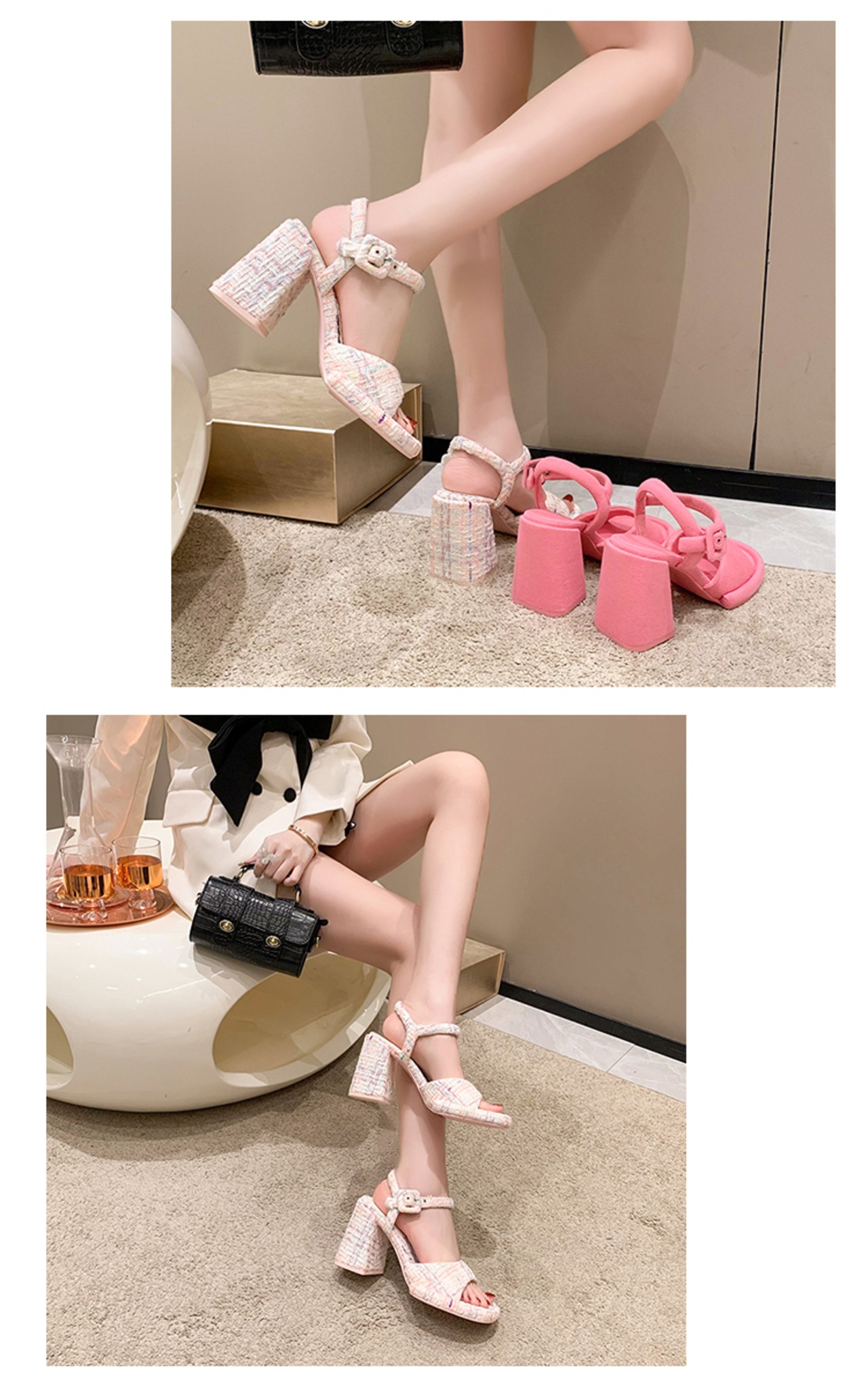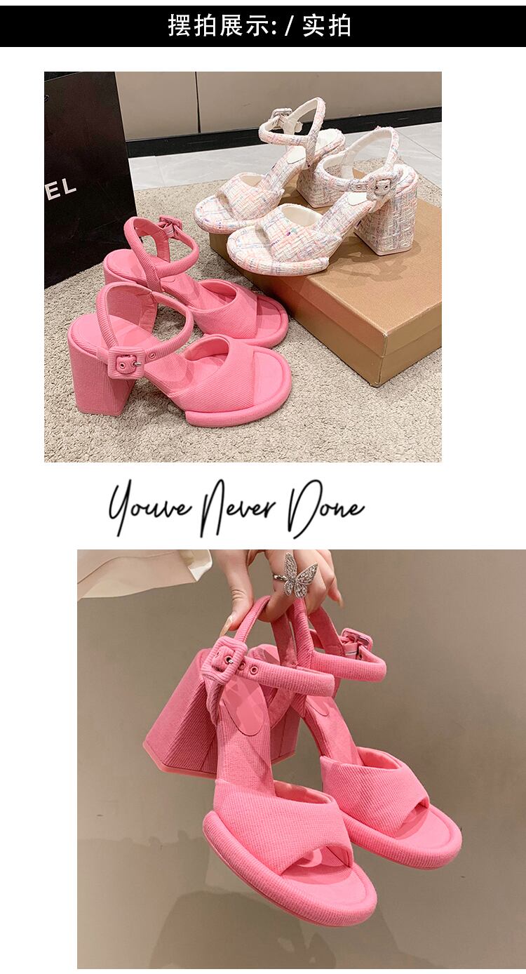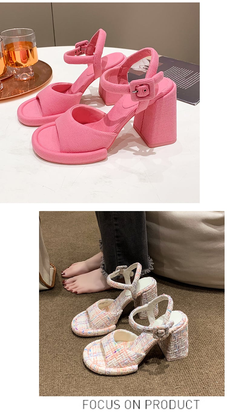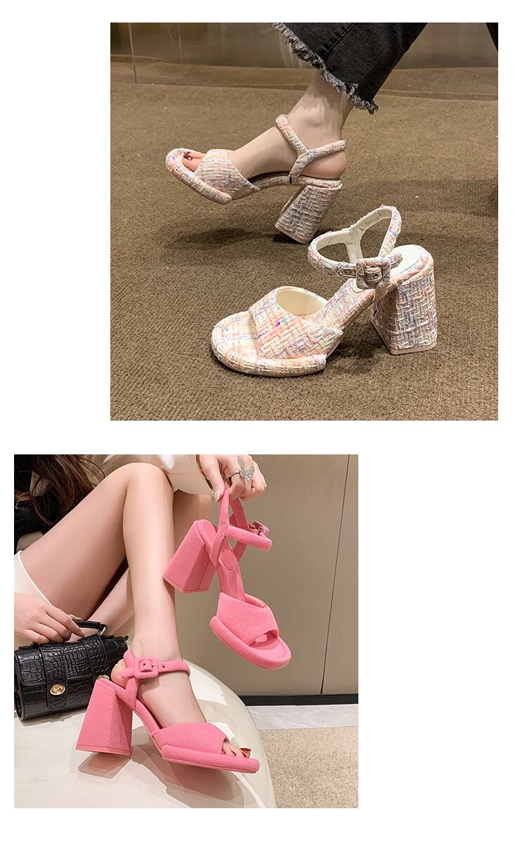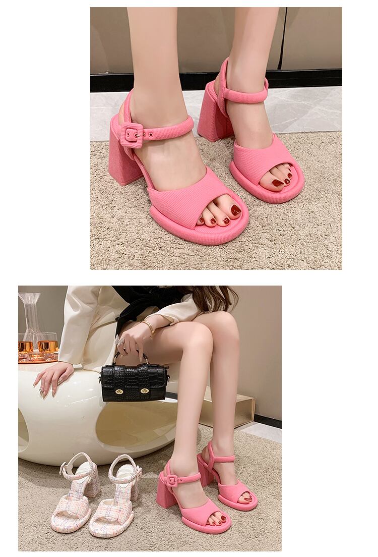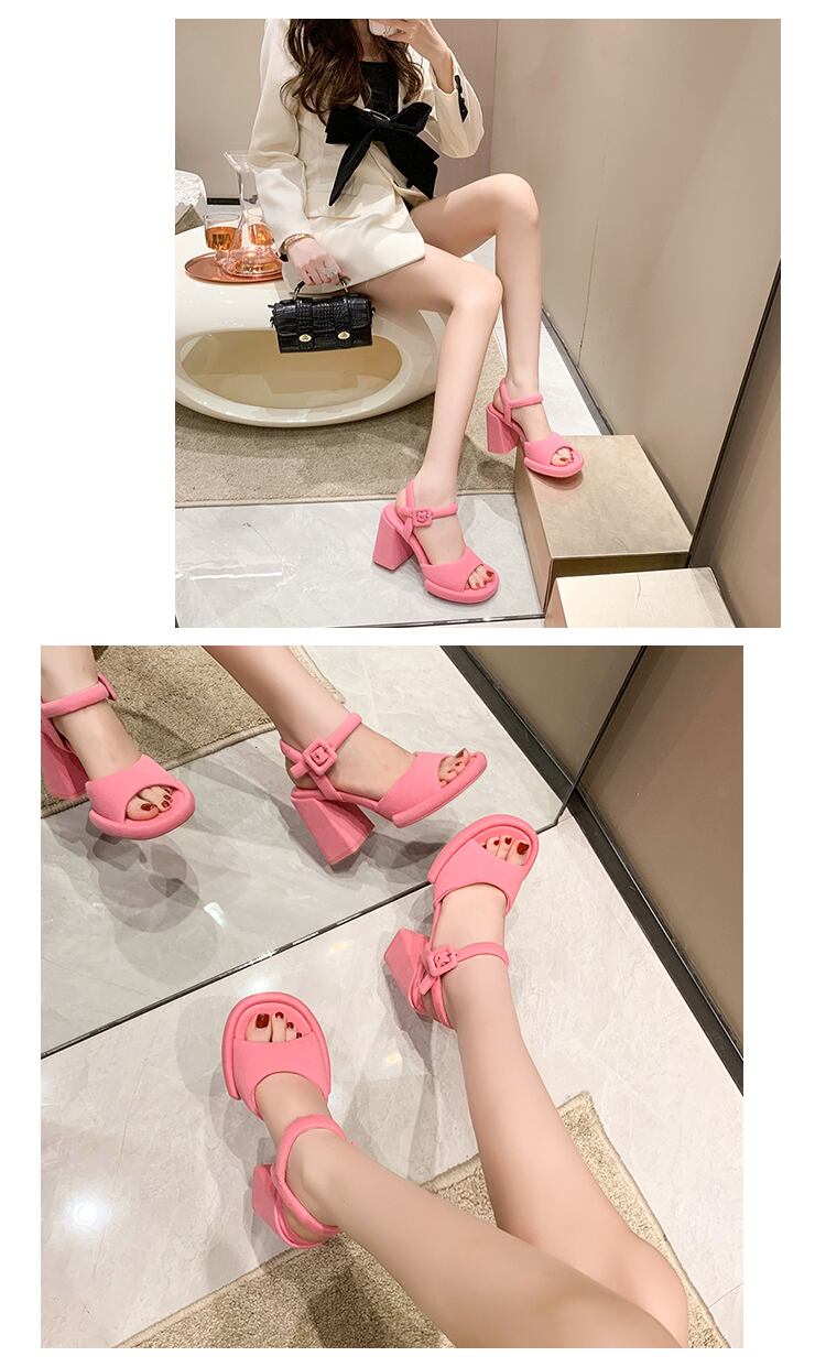 2color 派手かわいい♡ベルトデザイン 太めのヒールサンダル