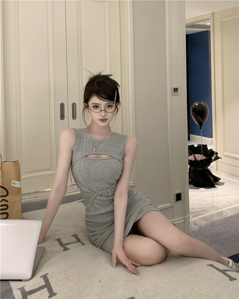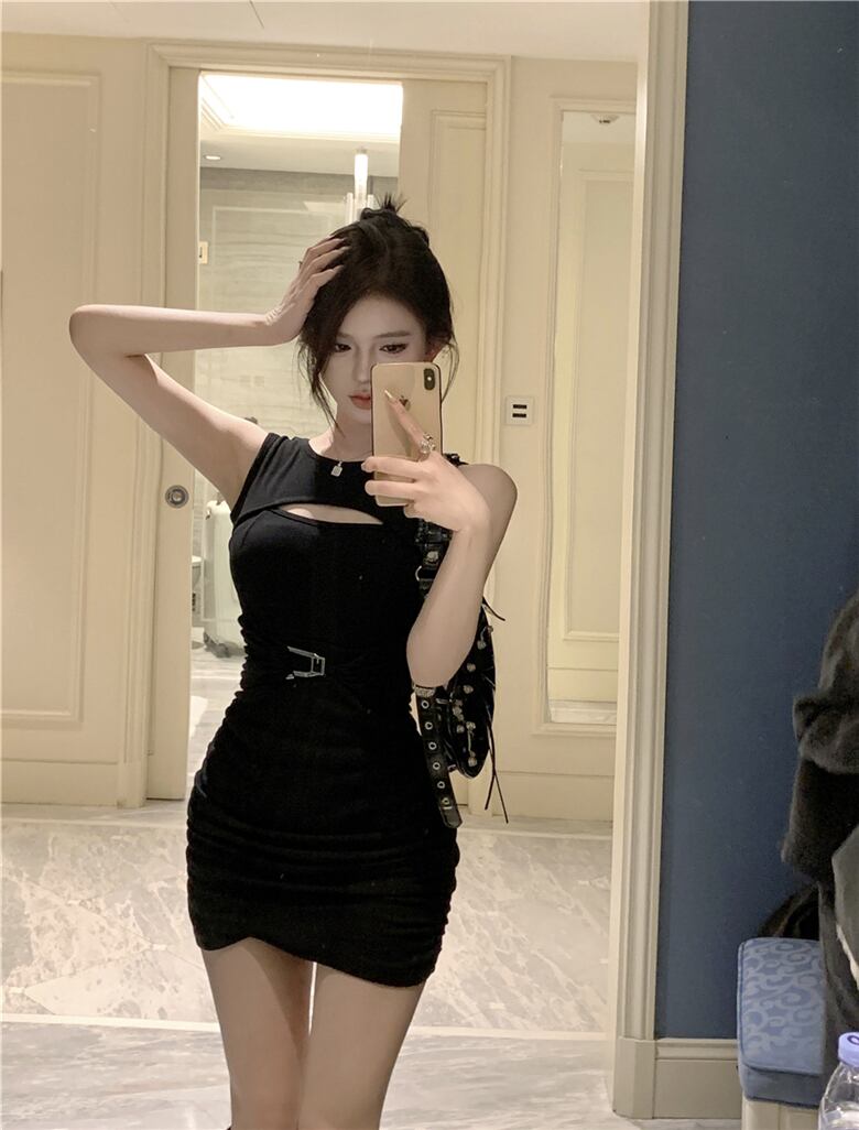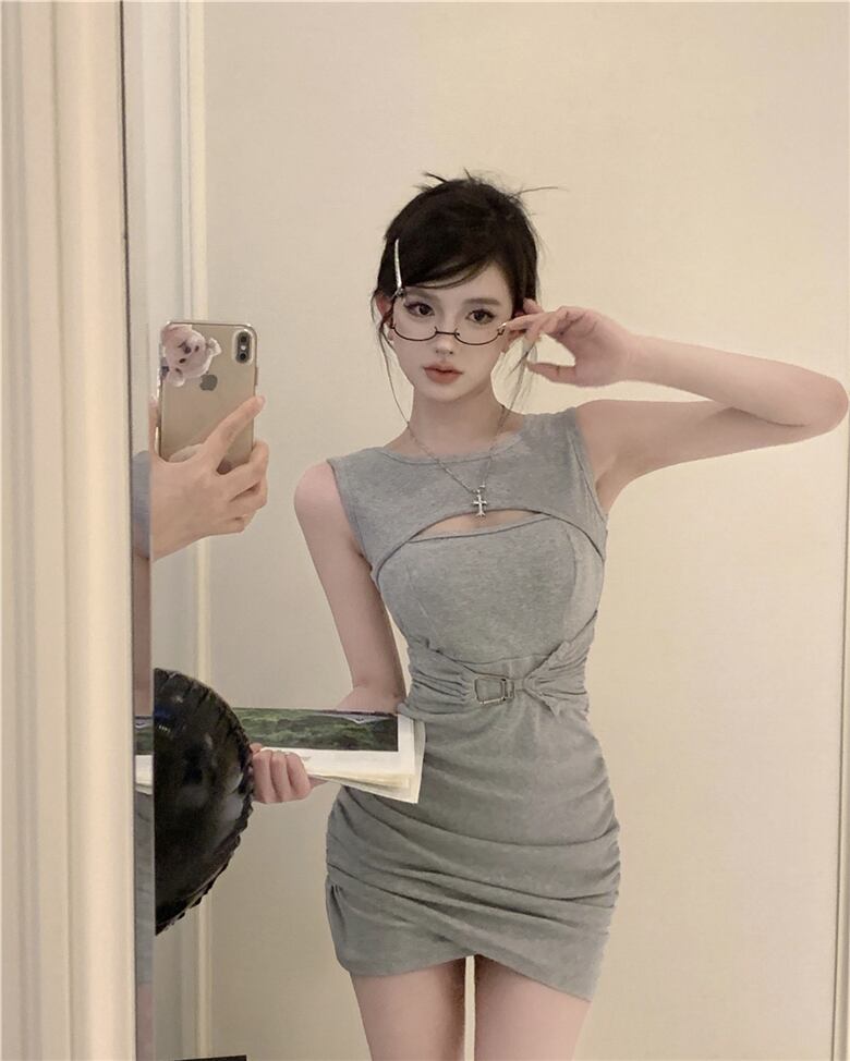 3color セクシー♡フロントカットノースリーブタイトミニワンピ