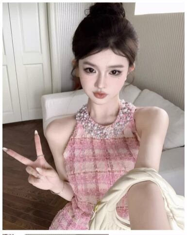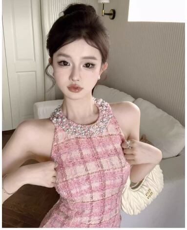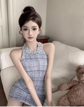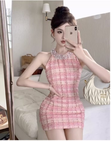 3color キラキラビジューが華やか♡ホルターネックツイードミニワンピ