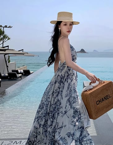あなたもブルー花柄マキシワンピースを着て、人々の注目を集めてください☆これからのあなたのスタイルの主役になること間違いなしです。